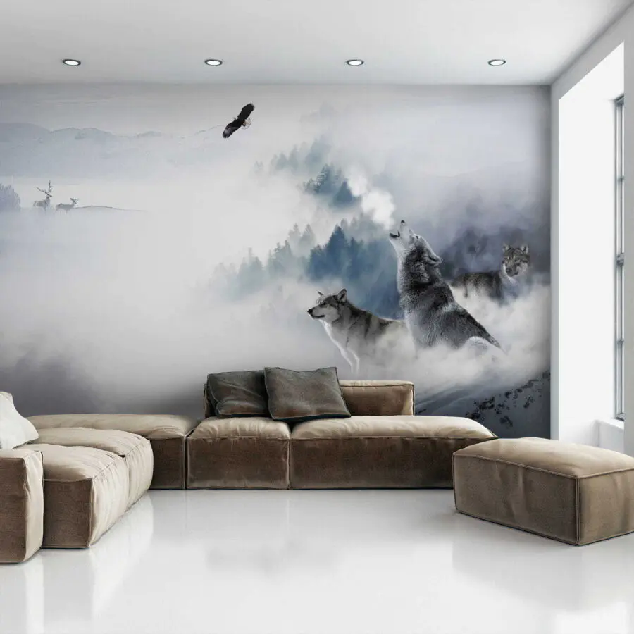 Transformeer je ruimte met deze fascinerende muurschildering met een wolf die majestueus in de sneeuw staat. Stel je voor dat je een kamer binnenloopt waar de ongetemde geest van de natuur je omhult – deze muurschildering doet precies dat! Met zijn zachte tinten en serene achtergrond van ijzige landschappen nodigt het uit tot dagdromen over besneeuwde wandelingen en frisse lucht. Stel je voor: lekker wegkruipen met een goed boek, het ruisen van de natuur op slechts een oogwenk afstand. Het is alsof je een stukje wildernis in huis hebt, waar je de geheimen van het buitenleven hoort. Het is oogverblindend en inspireert misschien wel tot een beetje wolvengefluister van jezelf! Perfect voor natuurliefhebbers of iedereen die een wild tintje aan zijn interieur wil geven.