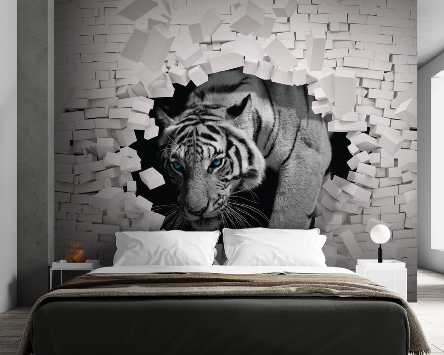 Hallo daar! Heb je er ooit aan gedacht om een woeste tijger door je muur te laten breken? Nou, met de muurschildering “Tijger breekt door witte bakstenen muur” is het net alsof je een wilde energie in je woonruimte uitnodigt! Dit stuk is een wilde mix van kracht en stijl, met een tijger die uit een muur van witte bakstenen breekt – echt episch, toch? Het is perfect om een beetje drama toe te voegen aan elke kamer. Stel je de gezichten van je gasten voor als ze binnenkomen en “begroet” worden door dit majestueuze dier. Het is net alsof je een mini safariavontuur in huis haalt – geen paspoort nodig! 🐅✨