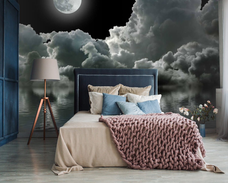 Verander elke kamer in een dromerige ontsnapping met deze prachtige muurschildering met de maan boven het water, gehuld in donzige wolken. Het is alsof je een stukje van de nachtelijke hemel naar binnen haalt! Stel je voor dat je op de bank ligt, nippend aan een kopje thee, terwijl dit serene uitzicht je begroet. De zachte reflecties in het water trekken de aandacht en creëren een rustige sfeer, perfect om tot rust te komen na een lange dag. En wie houdt er nou niet van een maanverlicht tafereel dat je een beetje poëtisch doet voelen? Gasten vragen misschien zelfs of ze in een gezellige kunstgalerie zijn beland – hoe cool is dat? Deze muurschildering is niet alleen decoratie; het is een tafereel dat uitnodigt tot dagdromen, verhalen fluistert en een vleugje charme toevoegt aan je ruimte.