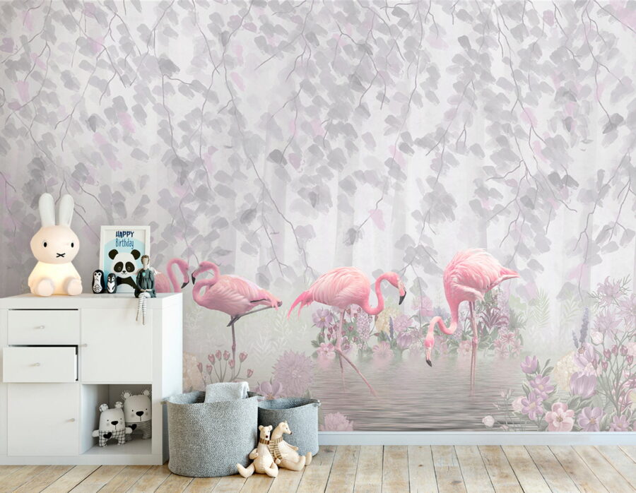 Transformeer elke ruimte met deze prachtige muurschildering met een groep roze flamingo’s die gracieus rondhangen bij een serene vijver, omringd door delicate bloemen. Stel je voor hoeveel warmte dit brengt – als een zachte omhelzing op een zonnige dag. Het is alsof je elke keer dat je de kamer binnenkomt een kleine vakantie neemt. De dromerige roze tinten en zachte bloemenmotieven creëren een rustige sfeer, waardoor deze muurschildering perfect is voor een gezellige woonkamer of een rustgevende slaapkamer. Bovendien is het een gegarandeerd gespreksonderwerp! Wie wil er nu niet praten over deze fantastische gevederde vrienden? Voeg deze muurschildering toe en laat je muren een levendig verhaal vertellen dat iedereen zich thuis laat voelen.