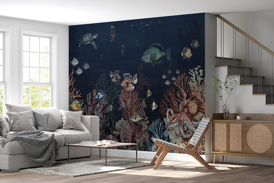 Duik in het diepe met deze prachtige muurschildering “Schildpad zwemt in het water”! Het is net alsof je een mini-aquarium aan je muur hebt zonder het onderhoud. Stel je een luie zaterdagmiddag voor, nippend aan een kopje thee en je een beetje Aquaman voelend met schildpadden, levendige vissen en koraal die je gezelschap houden. De kleuren knallen, maar op een ontspannen manier. Deze muurschildering is perfect voor je woonkamer of zelfs een kinderkamer en brengt een vleugje magie en een vleugje zee binnenshuis. Laat elke dag voelen als een stranddag, zonder het zand in je schoenen! 🌊🐢