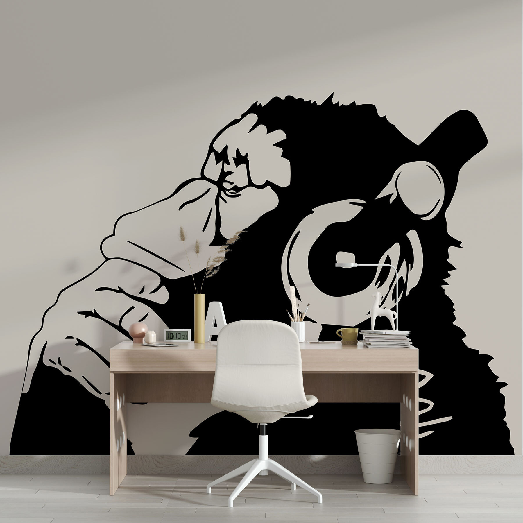Heb je een saaie muur die wat persoonlijkheid nodig heeft? Breng hem tot leven met deze muurschildering “Monkey wearing headphones”! Perfect om een vleugje plezier toe te voegen aan elke kamer, of het nu een kinderkamer is, een speelkamer of zelfs je thuiskantoor als je je avontuurlijk voelt. Deze brutale aap snapt het gewoon – soms moet je de muziek wat harder zetten en verdwalen in je eigen wereld. Hij is eigenzinnig, eigentijds en tovert bij iedereen een glimlach op het gezicht. Ken je dat gevoel wanneer de muziek precies goed is en al het andere vervaagt? Ja, deze aap snapt het. Je muren zullen je dankbaar zijn!