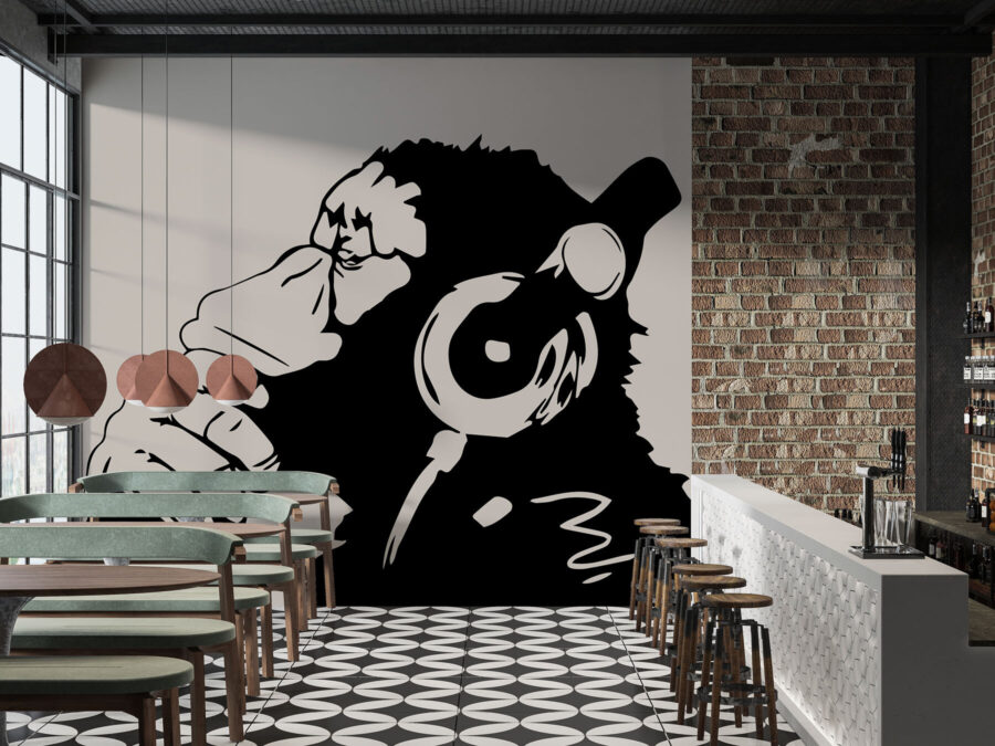 Heb je een saaie muur die wat persoonlijkheid nodig heeft? Breng hem tot leven met deze muurschildering “Monkey wearing headphones”! Perfect om een vleugje plezier toe te voegen aan elke kamer, of het nu een kinderkamer is, een speelkamer of zelfs je thuiskantoor als je je avontuurlijk voelt. Deze brutale aap snapt het gewoon – soms moet je de muziek wat harder zetten en verdwalen in je eigen wereld. Hij is eigenzinnig, eigentijds en tovert bij iedereen een glimlach op het gezicht. Ken je dat gevoel wanneer de muziek precies goed is en al het andere vervaagt? Ja, deze aap snapt het. Je muren zullen je dankbaar zijn!