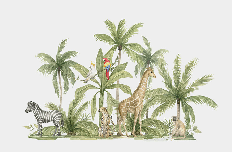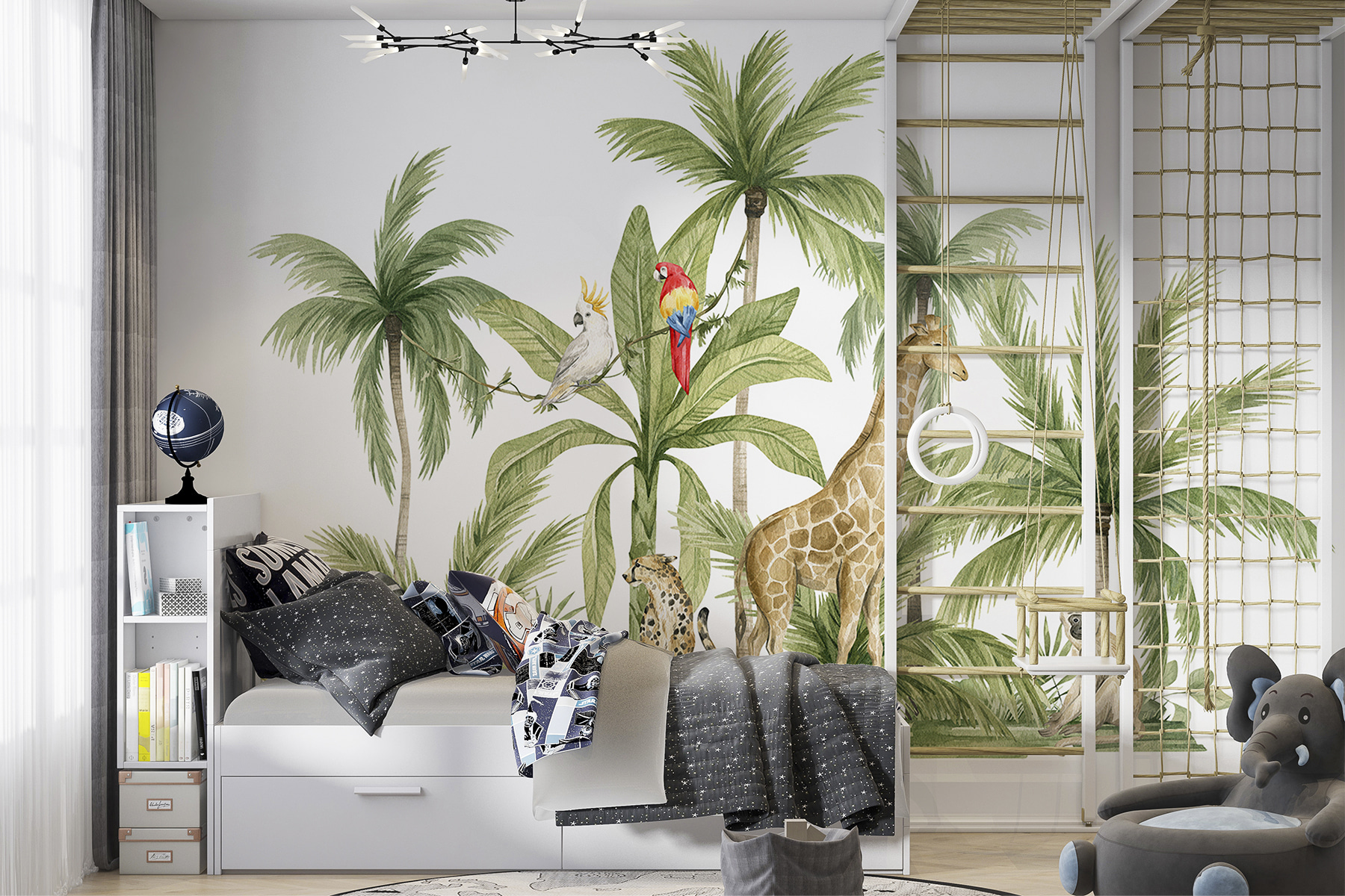 Kinderen zouden er dol op zijn en verhaaltjes verzinnen over bevriend raken met jungledieren. Het is ook fantastisch om een speelse, grillige sfeer te creëren zonder te veel te zijn. Zelfs volwassenen zullen het ontspannend vinden, als een minivakantie in een tropisch paradijs bij je thuis. De zachte, aardse tinten in combinatie met levendige details brengen precies de juiste balans van rust en levendigheid.
