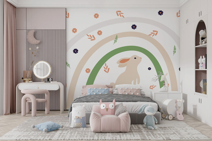Kijk eens naar deze charmante muurschildering! Hij heet “Paarse bloem met oranje hart” en brengt een speels vleugje kleur in je kamer. Deze muurschildering is perfect voor kinderkamers of hoeken met een dierenthema en combineert eigenzinnigheid met een vleugje natuur. Stel je een vrolijk konijntje voor dat rond die mooie bloemen huppelt – het is net alsof je een sprookjesboek tot leven brengt. Bovendien zorgt de mix van zachte pasteltinten en levendige tinten voor een frisse, levendige uitstraling. Ideaal om kleine fantasieën te prikkelen of gewoon een saaie muur op te fleuren. Zo schattig en charmant! 🌸🐇
