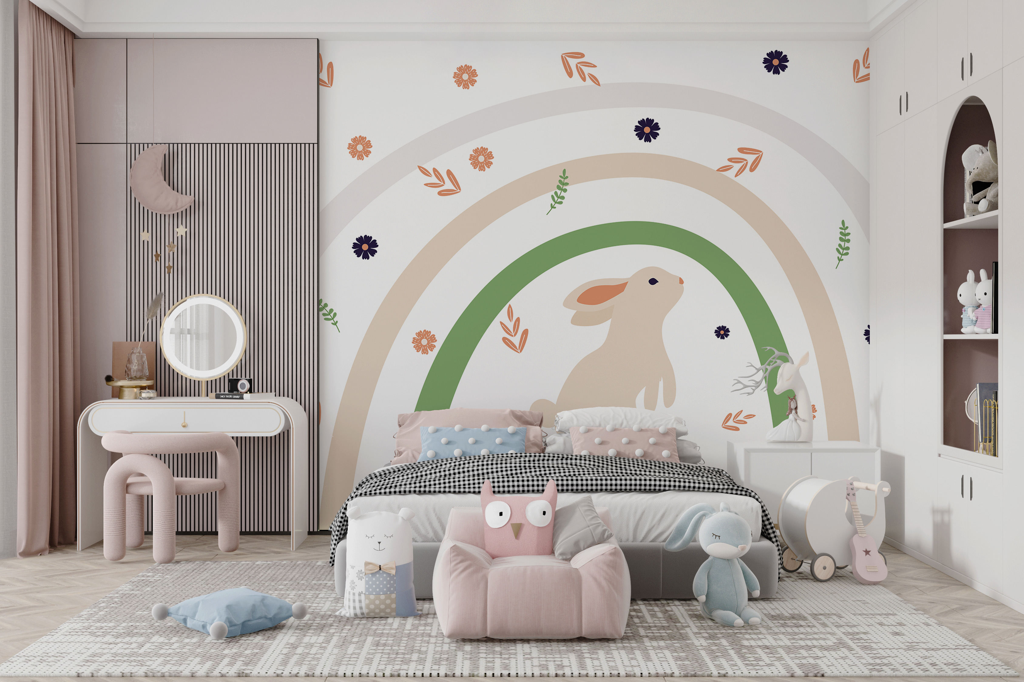 Kijk eens naar deze charmante muurschildering! Hij heet “Paarse bloem met oranje hart” en brengt een speels vleugje kleur in je kamer. Deze muurschildering is perfect voor kinderkamers of hoeken met een dierenthema en combineert eigenzinnigheid met een vleugje natuur. Stel je een vrolijk konijntje voor dat rond die mooie bloemen huppelt – het is net alsof je een sprookjesboek tot leven brengt. Bovendien zorgt de mix van zachte pasteltinten en levendige tinten voor een frisse, levendige uitstraling. Ideaal om kleine fantasieën te prikkelen of gewoon een saaie muur op te fleuren. Zo schattig en charmant! 🌸🐇