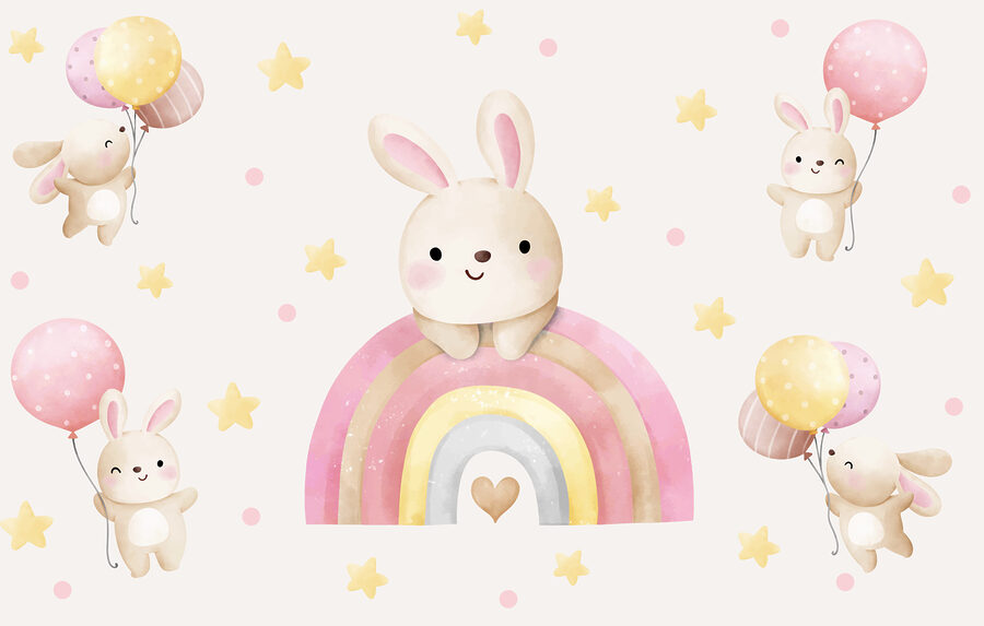Maak kennis met “Fotobehang w01332v1” – het kleine vleugje grillige vreugde waar je dol op zult zijn! Deze muurschildering heeft alle ingrediënten voor een charmante ruimte: schattige konijntjes, zachte pastelkleuren en een betoverende regenboog. Stel je een kinderkamer voor die zich koestert in de zoete, hartverwarmende gloed… Of zelfs een gezellig leeshoekje dat zich meteen een stuk vrolijker voelt! De speelse konijntjes die ballonnen vasthouden, omringd door kleine sterretjes, maken van deze muurschildering een absolute dagdroom. Het is een vleugje magie – als een knuffel voor je muren! Perfect voor iedereen die houdt van een vleugje eigenzinnigheid en een heleboel glimlachen.