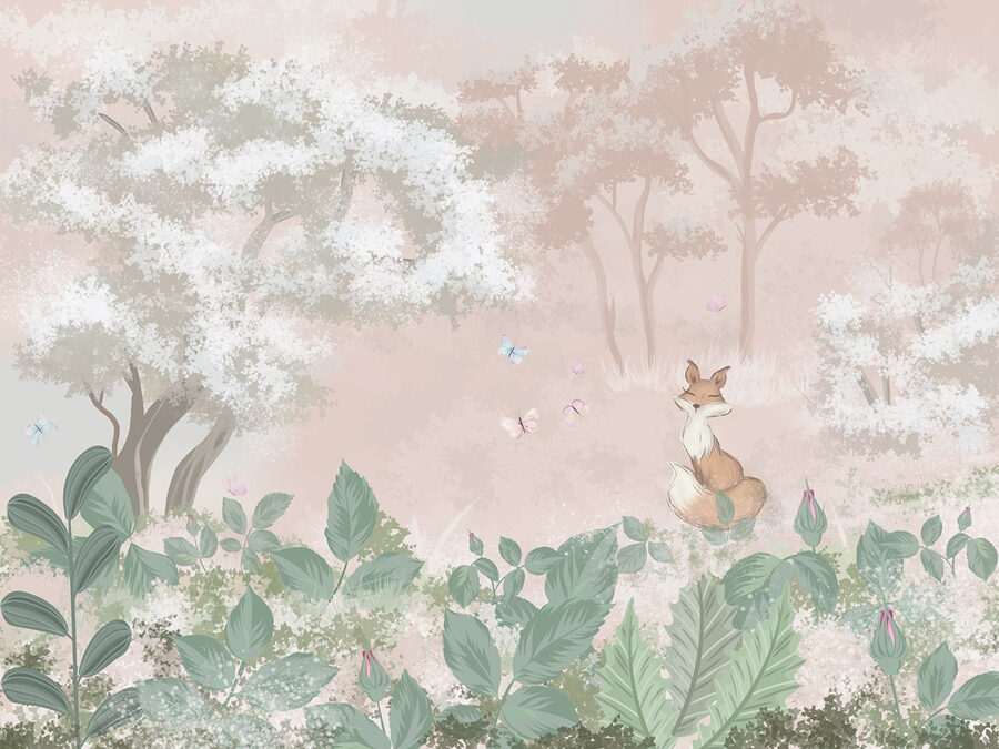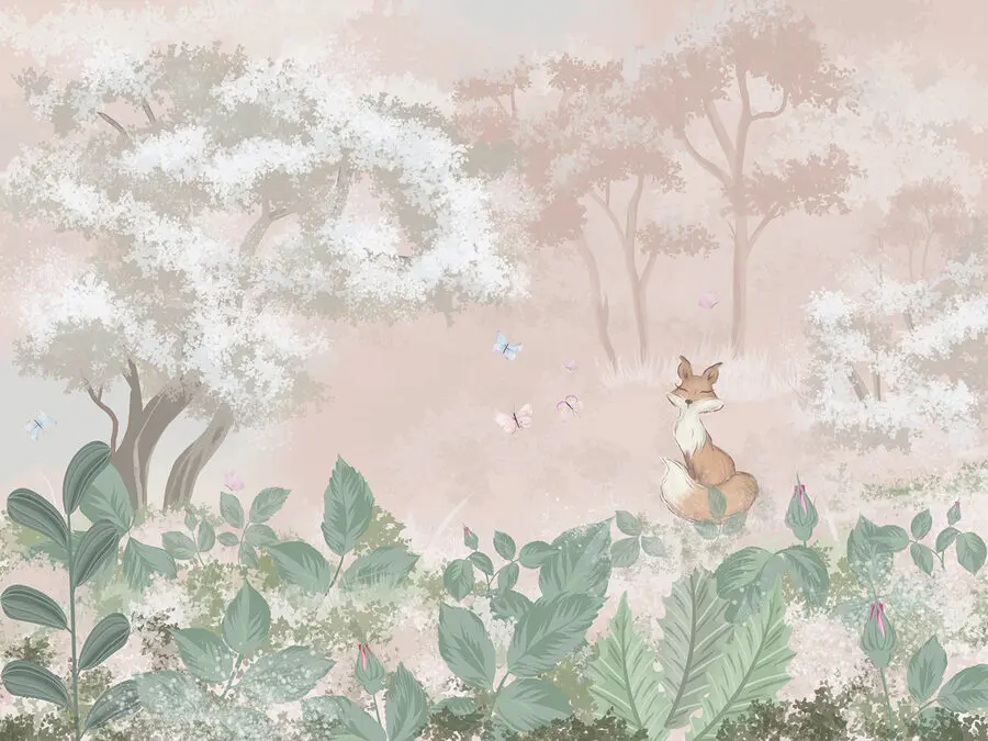 Transformeer je kamer met deze betoverende muurschildering met een charmante vos en fladderende vlinders op de achtergrond van een sereen bos. Het is net een stukje natuur in je woonkamer. Stel je voor dat je lekker op de bank gaat liggen met een goed boek en het gevoel hebt dat je in een grillig bos bent beland. De zachte kleuren creëren een rustgevende sfeer en nodigen uit tot kalmte. Elke blik kan een glimlach ontlokken als de vos over je lijkt te waken, en die vlinders? Heerlijke kleine metgezellen. Perfect om een adembenemende charme toe te voegen aan elke hoek – het is een feel-good muurschildering die zegt: “Relax, de natuur is hier!”.
