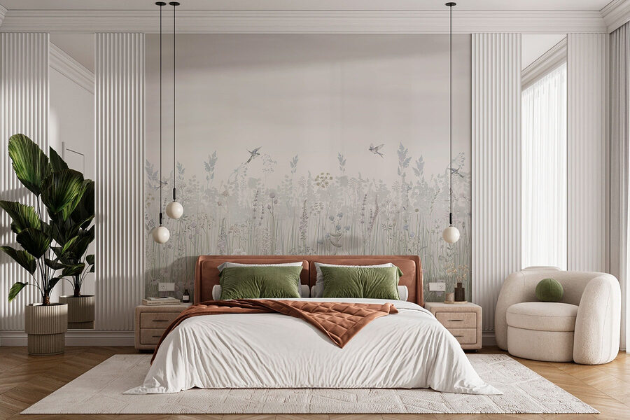 Tover elke kamer om in een serene ontsnapping met de muurschildering “Bloemen- en Vogelveld”. Stel je de zachte kleuren en tere bloemen voor, zachtjes wiegend in een dromerig briesje – een mini-uitstapje op je muur. Perfect voor wie een vleugje natuur in huis wil halen zonder het vuil! En die vogeltjes? Het zijn net kleine boodschappers van vreugde, die leven brengen in je ruimte. Stel je voor dat je hier aan je ochtendkoffie nipt en je rustig en geïnspireerd voelt. Deze muurschildering is niet alleen decor; het is een sfeer, een moment, een gevoel. Bovendien hoef je geen water te geven – score!