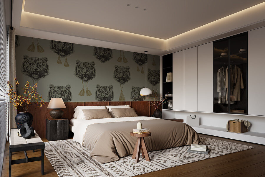 Transformeer je kamer met deze opvallende muurschildering met woeste tijgerkoppen versierd met speelse kwastjes. Stel je voor dat je een kamer binnenstapt waar gedurfde kunstzinnigheid samenkomt met een vleugje eigenzinnigheid – het is alsof je een wild feestje hebt met een stel stijlvolle katten. De rijke, aardse tinten creëren een warme sfeer, terwijl de brullende tijgers voor een beetje drama zorgen. Perfect om een statement te maken in een woonkamer of een vleugje avontuur toe te voegen aan een gezellig hoekje. Wie wil zich niet een beetje gewaagder voelen elke keer als hij langsloopt? Maak je klaar om het gebrul van stijl te omarmen!