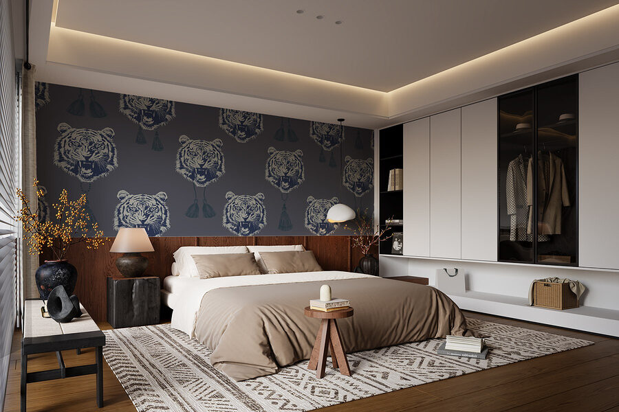 Verander je ruimte in een wilde retraite met het “Muurschilderingen Patroon van tijgers met kwastjes”. Deze muurschildering brengt een woeste elegantie, met majestueuze tijgers met hun speelse kwastjes die lijken te fluisteren, “Ik ben hier de baas.” Stel je eens voor dat je een kamer binnenloopt waar deze stoere katten je elke dag begroeten – ongetwijfeld een gespreksstarter! Perfect voor een thuiskantoor of een dramatische woonkamer, het voegt persoonlijkheid toe zonder te over-the-top te zijn. Plus, wie zou zich niet zelfverzekerd voelen omringd door deze opvallende wezens? Probeer het alleen niet te verwarren met een dierentuin!