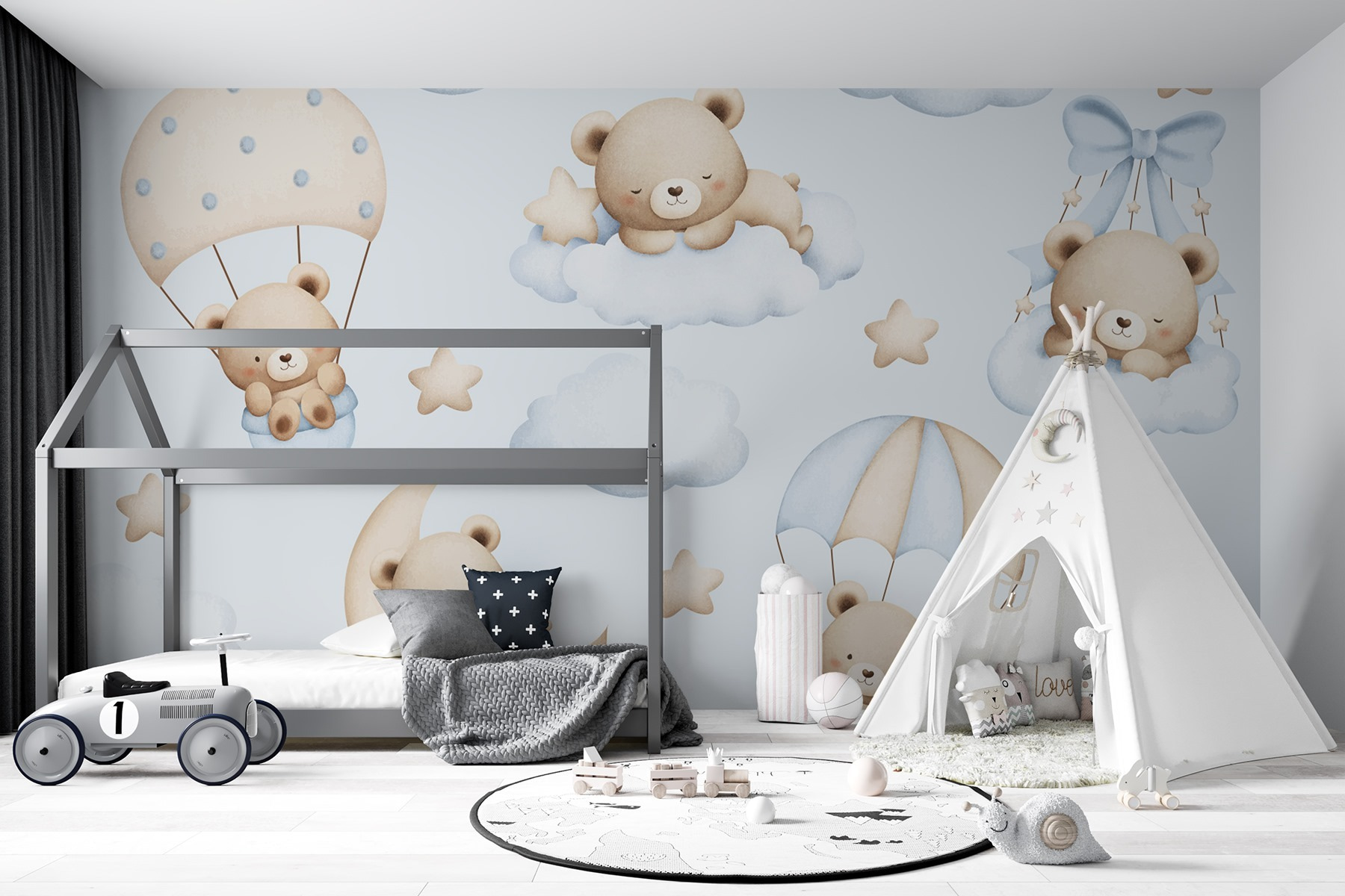 Tover elke kamer om in een gezellig wonderland met deze schattige muurschildering met charmante teddyberen die op wolken zweven. Echt, wie wil er nou geen kleine berenvriendjes in zijn kamer? Deze muurschildering is perfect voor kinderkamers of speelzalen en geeft een gevoel van rust en vreugde, alsof elke beer op een zacht avontuur is. Stel je de lieve giecheltjes en verhaaltjes voor het slapengaan eens voor onder deze pluizige taferelen. Het is niet zomaar een muurschildering; het is een ticket naar dromenland waar knuffels en gelach heersen. Dus, pak wat warme chocolademelk en laat de knuffels je omringen!
