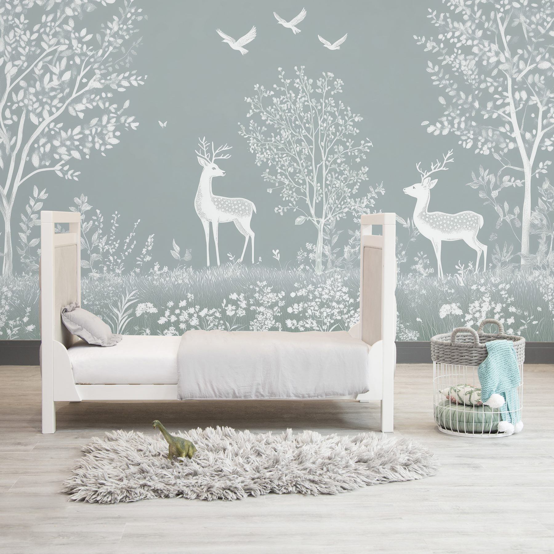 Transformeer je kamer in een serene ontsnapping met deze betoverende muurschildering met sierlijke witte herten die door een zacht, bladerrijk bos zwerven. Stel je voor dat je je kamer binnenstapt en het gevoel hebt dat je in een dromerig bos bent beland vol zacht gefluister van de natuur. De delicate vogels die erboven fladderen voegen een vleugje eigenzinnigheid toe, waardoor het een perfecte achtergrond is voor gezellige avonden of inspirerende ochtenden. Het is net alsof je thuis een vredig toevluchtsoord hebt! Of je nu thee drinkt of een boek leest, deze muurschildering nodigt uit tot die kleine momenten van rust. Bovendien is het een geweldige gespreksstarter – wie wil er nou niet praten over zijn geheime bos?