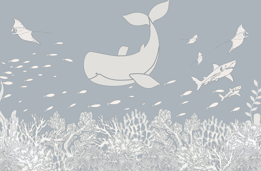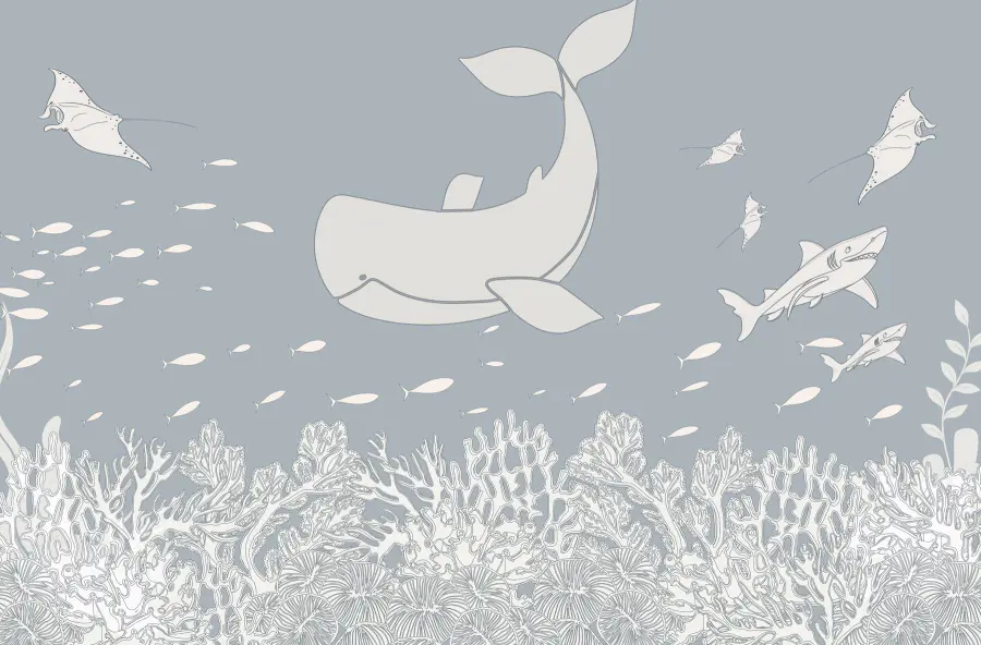 Verander je ruimte in een serene onderwaterwereld met deze charmante muurschildering met walvissen en speelse vissen die sierlijk in de oceaan zwemmen. Stel je voor dat je een kamer binnenloopt waar de zachte golven van het zeeleven uitnodigen tot ontspanning – het is alsof je een stukje oceaan thuis hebt. Het strakke ontwerp, compleet met delicate koraaldetails, creëert een rustgevende achtergrond. Voel je je een beetje gestrest? Werp een blik op deze muurschildering en laat je zorgen wegdrijven als een luie middagvloed. Perfect voor natuurliefhebbers of iedereen die een vleugje rust aan zijn interieur wil toevoegen!