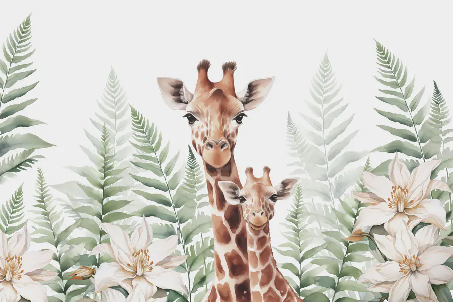 Verander je ruimte in een grillige tuin met deze prachtige muurschildering met sierlijke giraffen die door weelderig groen en delicate bloemen gluren. Het is alsof je een vleugje savanne in je woonkamer brengt! Stel je voor dat je ‘s ochtends aan je koffie nipt terwijl deze vriendelijke reuzen over je waken – zo sereen. Perfect voor kinderkamers, speelzalen of waar dan ook die een vleugje speelsheid en charme kunnen gebruiken. En wie zou er niet glimlachen om die schattige gezichtjes? Het is niet alleen decor; het voelt als een knuffel van de natuur, die warmte en vreugde uitstraalt in elke hoek.