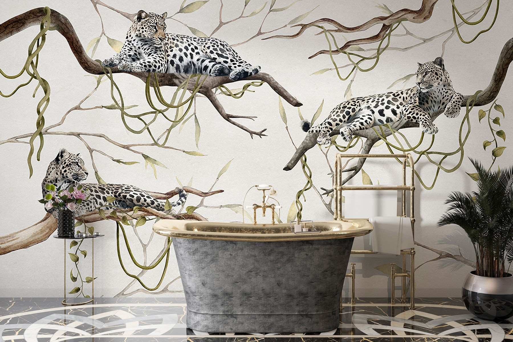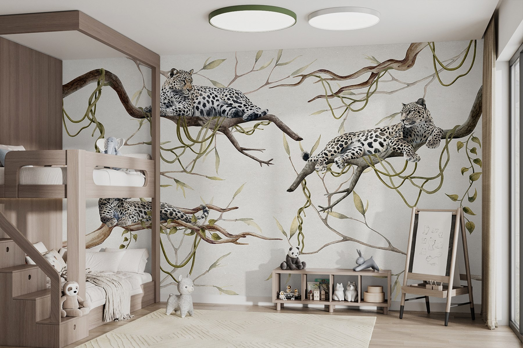 Verander je ruimte in een wilde oase met deze prachtige muurschildering met een groep luipaarden die op takken liggen te luieren. Stel je voor dat je de kamer binnenstapt en de essentie van de natuur om je heen voelt – die moeiteloze patronen van vlekken en chique poses stelen gewoon de show. Perfect voor die plek die een beetje pit nodig heeft, of misschien om afgunst op te wekken tijdens je volgende boekenclubbijeenkomst. Het is alsof je een stukje jungle in huis hebt, maar dan zonder de muggen. En wie wil er nu niet wakker worden met zulke majestueuze wezens? Het draait allemaal om die harmonieuze sfeer, toch?