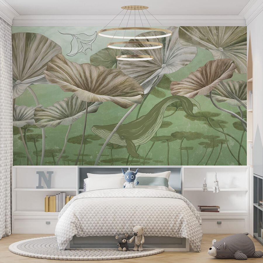 Duik in de serene sfeer van deze prachtige muurschildering met een sierlijke walvis die door rustige wateren glijdt. Stel je voor dat je ruimte verandert in een onderwaterparadijs, waar elke blik voelt als een vredige ontsnapping. Het zachte groen en de aardse tinten kalmeren niet alleen de zintuigen, maar nodigen ook uit om naar buiten te komen en creëren een ontspannen sfeer. Perfect voor natuurliefhebbers of iedereen die behoefte heeft aan een vleugje rust, voegt deze muurschildering een kunstlaag toe die nieuwsgierigheid en verwondering oproept. Het is alsof je een stukje oceaan bij je thuis hebt, zonder dat je zout water nodig hebt. De zachte aanwezigheid van de walvis fleurt een kamer moeiteloos op en stimuleert gesprekken en dagdromen. Dus waarom laat je dit prachtige zeeleven niet een gevoel van avontuur naar je muren brengen?