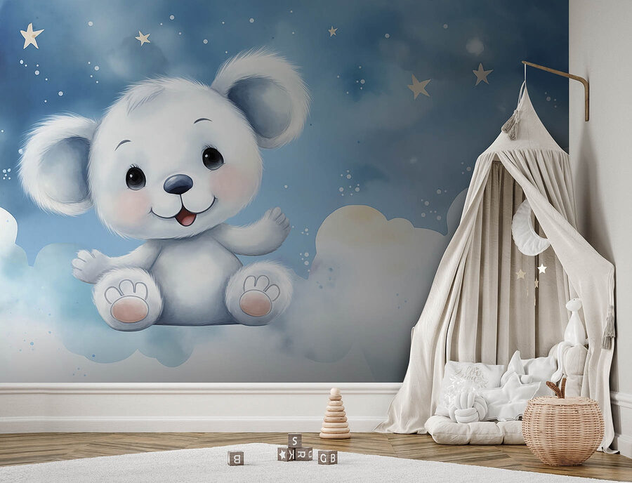 Transformeer elke ruimte met de prachtige “Fotobehang Cartoon of a White Bear. Stel je dit schattige mannetje voor, zwaaiend vanaf zijn pluizige wolk, klaar om vreugde door de kamer te strooien. Perfect voor kinderkamers, kinderkamers of zelfs gezellige leeshoekjes, deze muurschildering neemt je mee naar een dromerig land waar verbeelding heerst. Het is net als het gevoel van een warme knuffel na een lange dag – troostend en lief. De zachte blauwe en witte tinten creëren een serene achtergrond, waardoor het lijkt alsof de beer altijd waakt. Over instant charme gesproken! Met deze muurschildering kan elke blik een glimlach of een grappig verhaal ontlokken. Waarom laat je deze schattige beer niet over je dromen waken?
