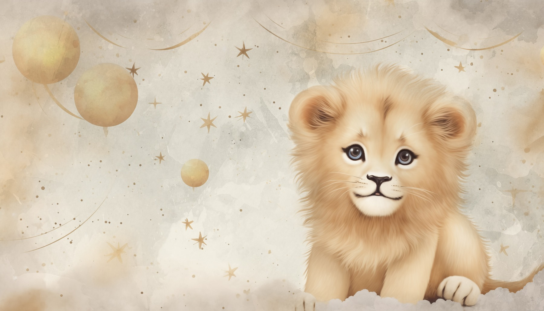 Verander elke ruimte in een grillig heiligdom met deze muurschildering “Leeuwenwelpje in de lucht”. Stel je voor dat je een kamer binnenloopt waar een lief leeuwenwelpje je aanstaart, omringd door wolken en fonkelende sterren – het is alsof je een stukje van een dromerige wereld aan je muur hebt hangen. De zachte kleuren creëren een gezellige, uitnodigende sfeer. Het is perfect voor een kinderkamer of speelse woonruimte. Stel je een kind voor dat vol ontzag wijst, verloren in de grote, expressieve ogen van de leeuw en droomt van avonturen. Deze muurschildering decoreert niet alleen, maar prikkelt de verbeelding en creëert een magische sfeer, waardoor elke blik een kleine ontsnapping wordt.