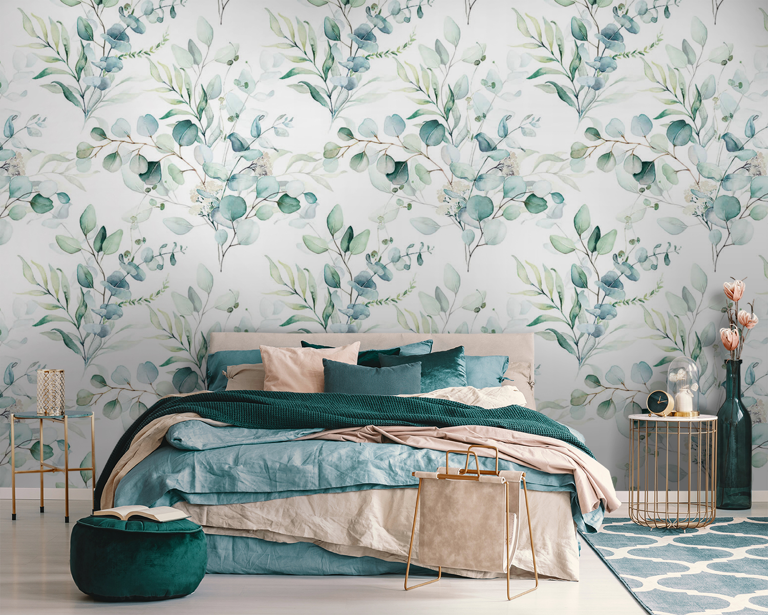 Transforming a space with this wall mural of leaves and branches feels like bringing a slice of nature right indoors. Imagine standing in your living room, surrounded by a calming blend of greens and subtle blues. It’s like a fresh breeze wafting through, minus the bugs! Perfect for reading nooks or cozy dining areas, this design gently whispers tranquility.