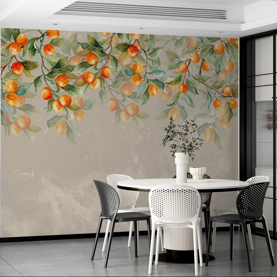 Transformeer je ruimte met deze charmante muurschildering, “Fruitful Tree Branches with Leaves”. Stel je voor dat je een kamer binnenloopt waar levendige takken gevuld met sappige vruchten je begroeten en een gevoel van sereniteit en vreugde uitstralen. Het is alsof je een stukje natuur in huis haalt – perfect voor keukens, eetkamers of andere gezellige hoekjes die een vleugje warmte nodig hebben. Mensen zullen zich aangetrokken voelen tot de zachte kleuren en het grillige ontwerp, waardoor een achtergrond ontstaat die aanzet tot een gesprek. Of je nu koffie drinkt of vrienden ontvangt, deze muurschildering voegt een vleugje vrolijkheid toe dat verfrissend organisch aanvoelt, net als een zonnige middag in de boomgaard. Laat muren tot leven komen en nodig die levendige, aardse sfeer uit bij je thuis.