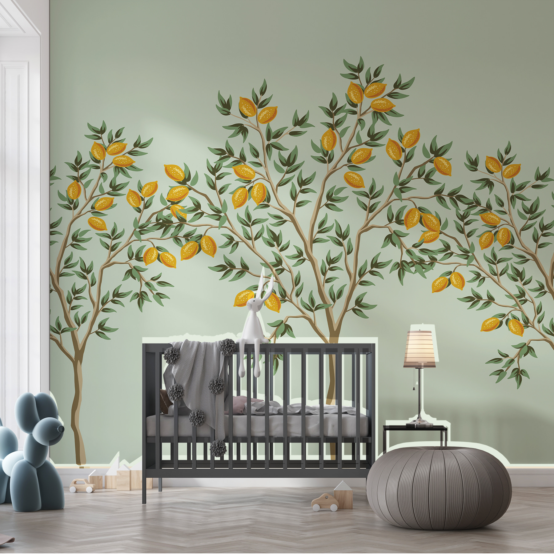 Fleur elke ruimte op met deze charmante muurschildering met een levendige boom vol gele vruchten. Stel je voor dat je een kamer binnenloopt en de frisse, zonnige sfeer voelt die het met zich meebrengt, alsof je in een stukje natuur stapt zonder ooit je huis te verlaten. De speelse kleuren springen in het oog, waardoor het perfect is voor keukens, eethoeken of zelfs een gezellig hoekje waar goede gesprekken vloeien. Het inspireert tot dagdromen over zonnige picknicks en limonade op warme middagen. Een leuke manier om een vleugje kleur en een vleugje eigenzinnigheid toe te voegen die gewoon goed voelt. Laat de vruchten je opvrolijken!
