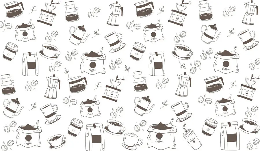 Verander elke ruimte in een gezellig café met deze charmante muurschildering “Patroon van koffie en thee”. Het is alsof je je ochtendbrouwsel op de muur hebt – koffiezakjes, dampende kopjes en speelse theepotten brengen een heerlijke warmte in je huis. Stel je voor dat je wakker wordt met dit uitnodigende tafereel, de geur van verse koffie die door de lucht zweeft terwijl je van je eigen kopje koffie nipt.