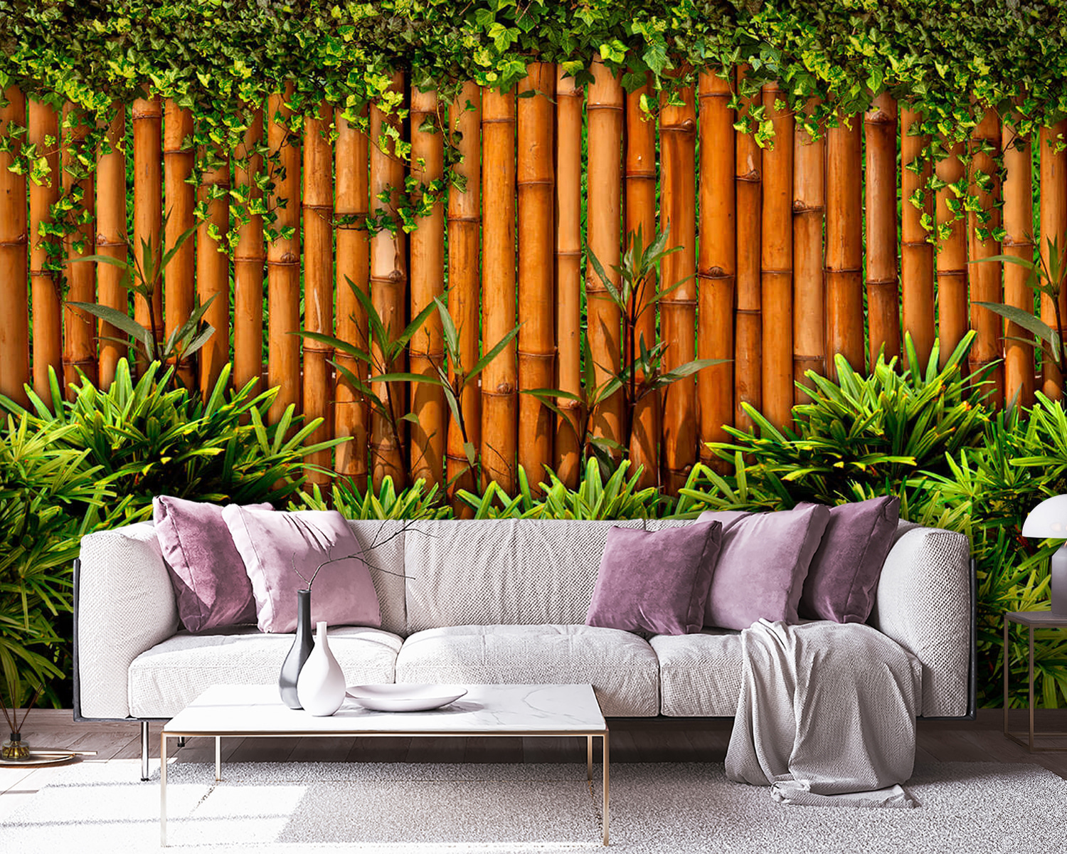 Verander je ruimte in een tropische oase met deze prachtige muurschildering met een bamboehek gedrapeerd in weelderige groene planten. Het is alsof je een stukje natuur in huis haalt, zonder de insecten en de vochtigheid. Stel je voor dat je aan je ochtendkoffie nipt of tot rust komt na een lange dag, terwijl je je omringd voelt door een rustgevende tuinsfeer. De rijke kleuren en natuurlijke elementen creëren een rustgevende achtergrond die perfect is voor elke kamer. Of het nu in de woonkamer, slaapkamer of zelfs een gezellig hoekje is, deze muurschildering nodigt uit tot een gevoel van warmte en sereniteit. Wie heeft een vakantie nodig als je dit kunt hebben?