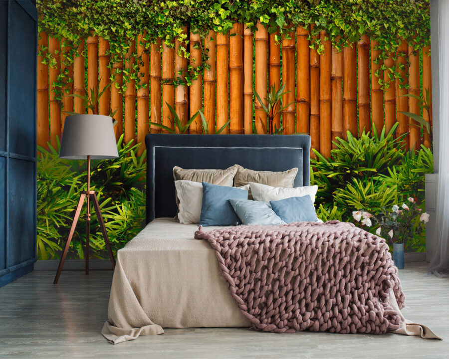 Verander je ruimte in een tropische oase met deze prachtige muurschildering met een bamboehek gedrapeerd in weelderige groene planten. Het is alsof je een stukje natuur in huis haalt, zonder de insecten en de vochtigheid. Stel je voor dat je aan je ochtendkoffie nipt of tot rust komt na een lange dag, terwijl je je omringd voelt door een rustgevende tuinsfeer. De rijke kleuren en natuurlijke elementen creëren een rustgevende achtergrond die perfect is voor elke kamer. Of het nu in de woonkamer, slaapkamer of zelfs een gezellig hoekje is, deze muurschildering nodigt uit tot een gevoel van warmte en sereniteit. Wie heeft een vakantie nodig als je dit kunt hebben?
