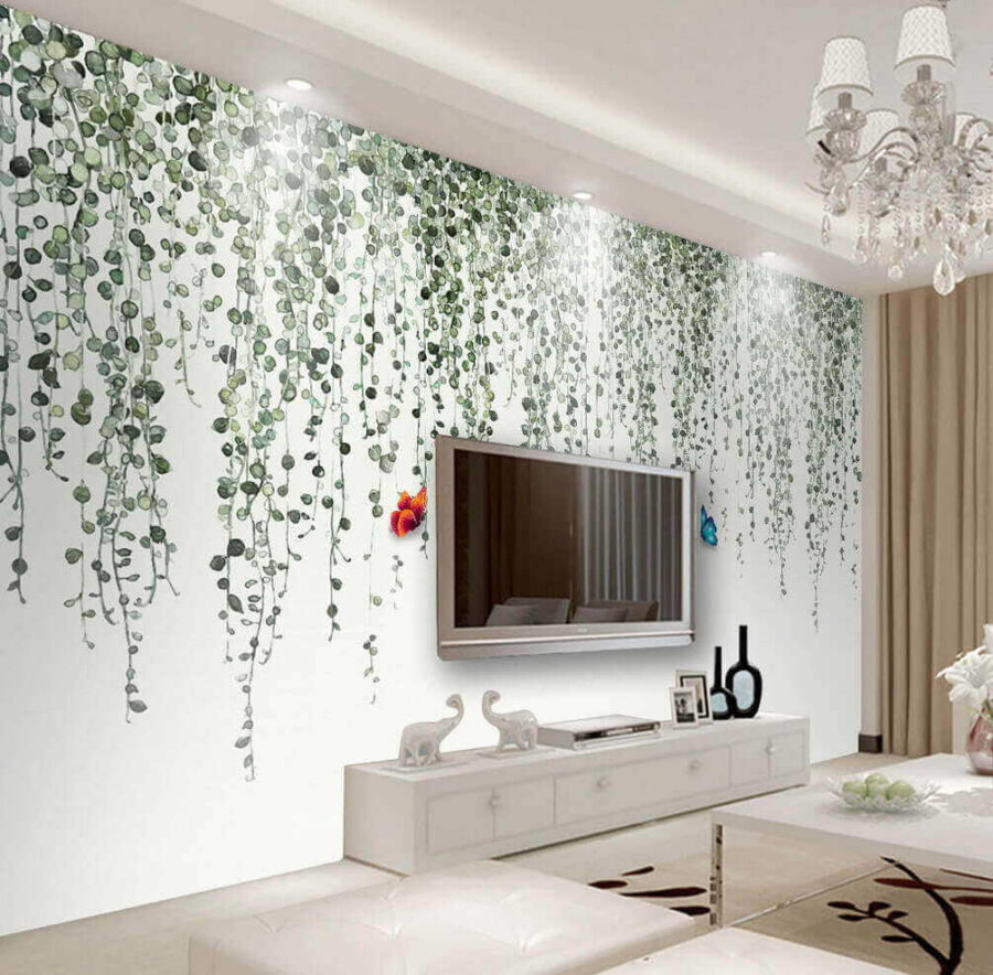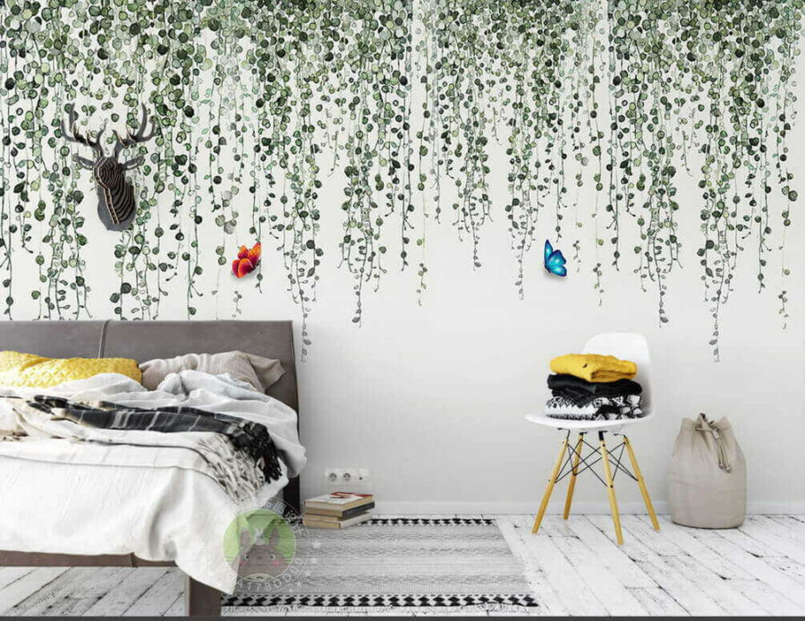 Stel je voor dat je een kamer binnenstapt die omhuld is door de natuur – deze muurschildering maakt die droom werkelijkheid! Met delicate klimplanten die naar beneden vallen en kleurrijke vlinders, verandert deze muurschildering saaie muren in een levendige ontsnapping. Stel je voor dat je achterover leunt met een kopje koffie, volledig ondergedompeld in de kleuren en serene sfeer. De subtiele groentinten brengen rust, terwijl de speelse vlinders dansen in het licht. Het is alsof je een eigen tuin in huis hebt! Deze muurschildering is perfect voor een gezellig hoekje of zelfs een levendige speelkamer en voegt dat vleugje fantasie toe waar iedereen van houdt. Het is altijd leuk om een beetje magie om je heen te hebben, vind je niet?