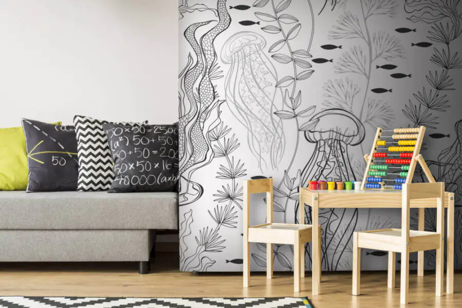 Dive into a world where sea creatures dance across your walls! This “Wall Murals Pattern of Sea Creatures” mural brings the mystique of the ocean right to your living room—without the damp smell or chance of getting lost at sea. Imagine strolling into a room filled with graceful jellyfish and elegant seaweed, making every glance feel like a mini-vacation.