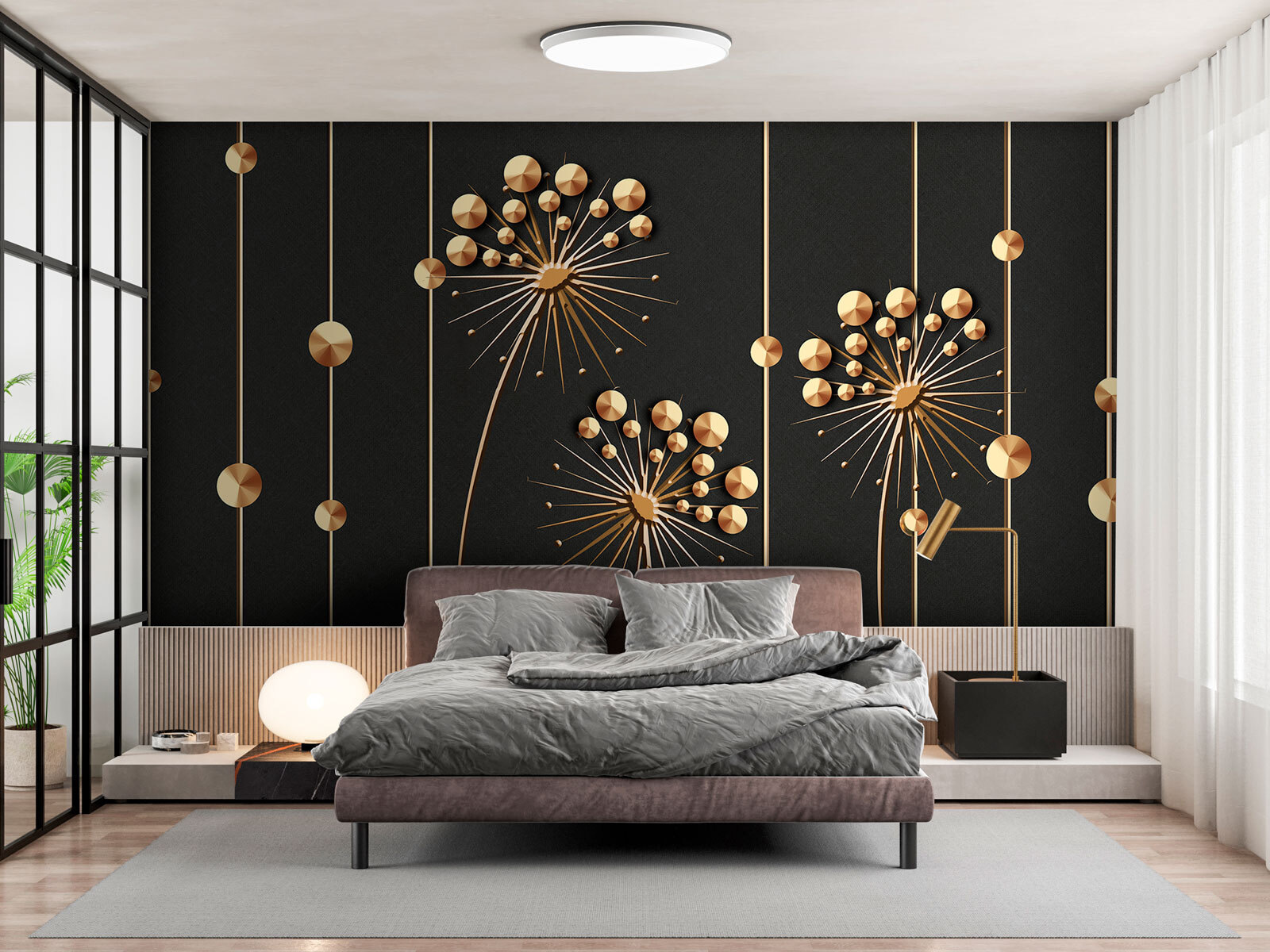 Fotobehang Fotobehang Elegante bloemmotieven op donkere achtergrond (SKU: u73252)