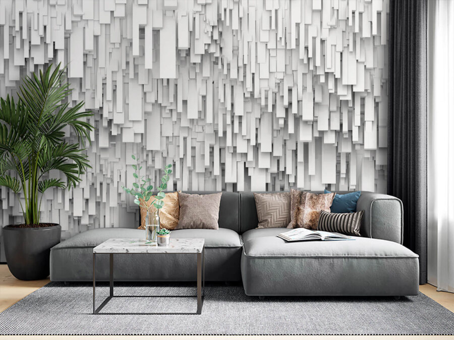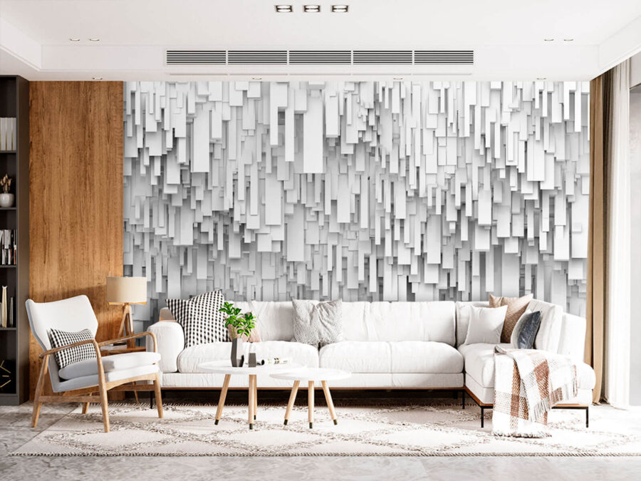 Transformeer uw ruimte met deze opvallende muurschildering met een prachtige reeks witte rechthoekige vormen. Het is alsof er een stukje moderne kunst op uw muur is gespat! Stelt u zich eens voor dat u een kamer binnenloopt waar de muren verhalen fluisteren over hedendaagse elegantie. Het spel van licht en schaduw creëert een rustgevende sfeer, perfect voor gezellige avonden of levendige bijeenkomsten. Het is een wirwar van geometrische charme die zo uitnodigend aanvoelt, dat het misschien wel vraagt om een kopje koffie en een ontspannen gesprek. Perfect voor wie het unieke waardeert en zijn interieur een beetje persoonlijkheid wil geven!