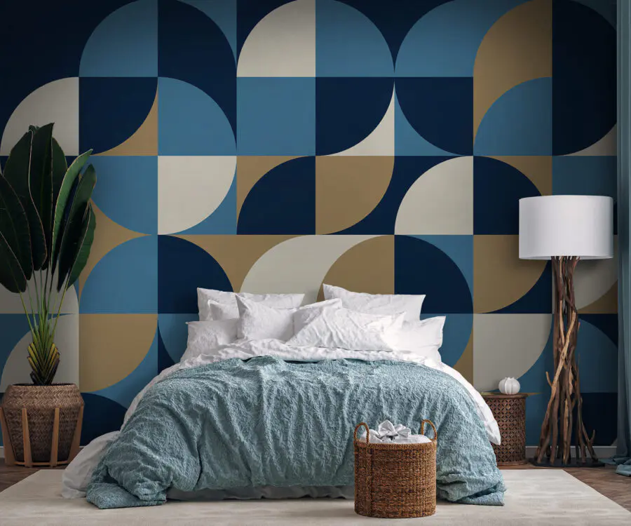 Heb je er ooit van gedroomd om je ruimte te transformeren met een vleugje moderne kunst? Kijk dan eens naar deze muurschildering met een geometrisch patroon in blauwe tinten. Het is als een visuele omhelzing van vormen en kleuren, perfect om een stijlvolle en toch gezellige sfeer toe te voegen aan elke kamer. Stel je voor dat je wakker wordt met deze muurschildering in je slaapkamer – het zou elke ochtend een frisse wind van creativiteit zijn! Of zet het in je kantoor om te inspireren tot out-of-the-box denken. De blauwe tinten zijn super rustgevend, terwijl het ingewikkelde ontwerp het interessant houdt. Het is een gespreksstarter, een kunstwerk en een sfeerwisselaar in één. Wie wist dat geometrie zo cool kon zijn?