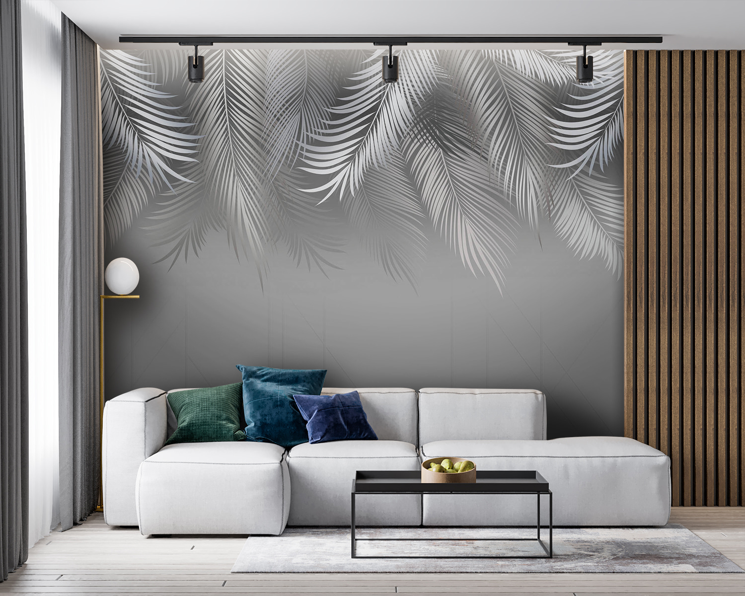 Stel je eens voor dat je een kamer binnenstapt waar de muur verhalen fluistert van tropische briesjes en luie, zonovergoten middagen. Deze muurschildering met sierlijke palmbladeren op een zachtgrijze achtergrond brengt een vleugje paradijs in huis. Het is net alsof je thuis een minivakantie hebt. Denk maar aan lekker onderuit zakken met een boek of een kopje koffie, allemaal omringd door dit lieflijke gebladerte. Het is ook veelzijdig – perfect voor een serene slaapkamer, een stijlvolle woonkamer of dat knusse hoekje waar creativiteit stroomt. Een beetje natuur en veel rust, allemaal verpakt in een prachtig ontwerp. Wie zou zich hier niet ontspannen voelen?