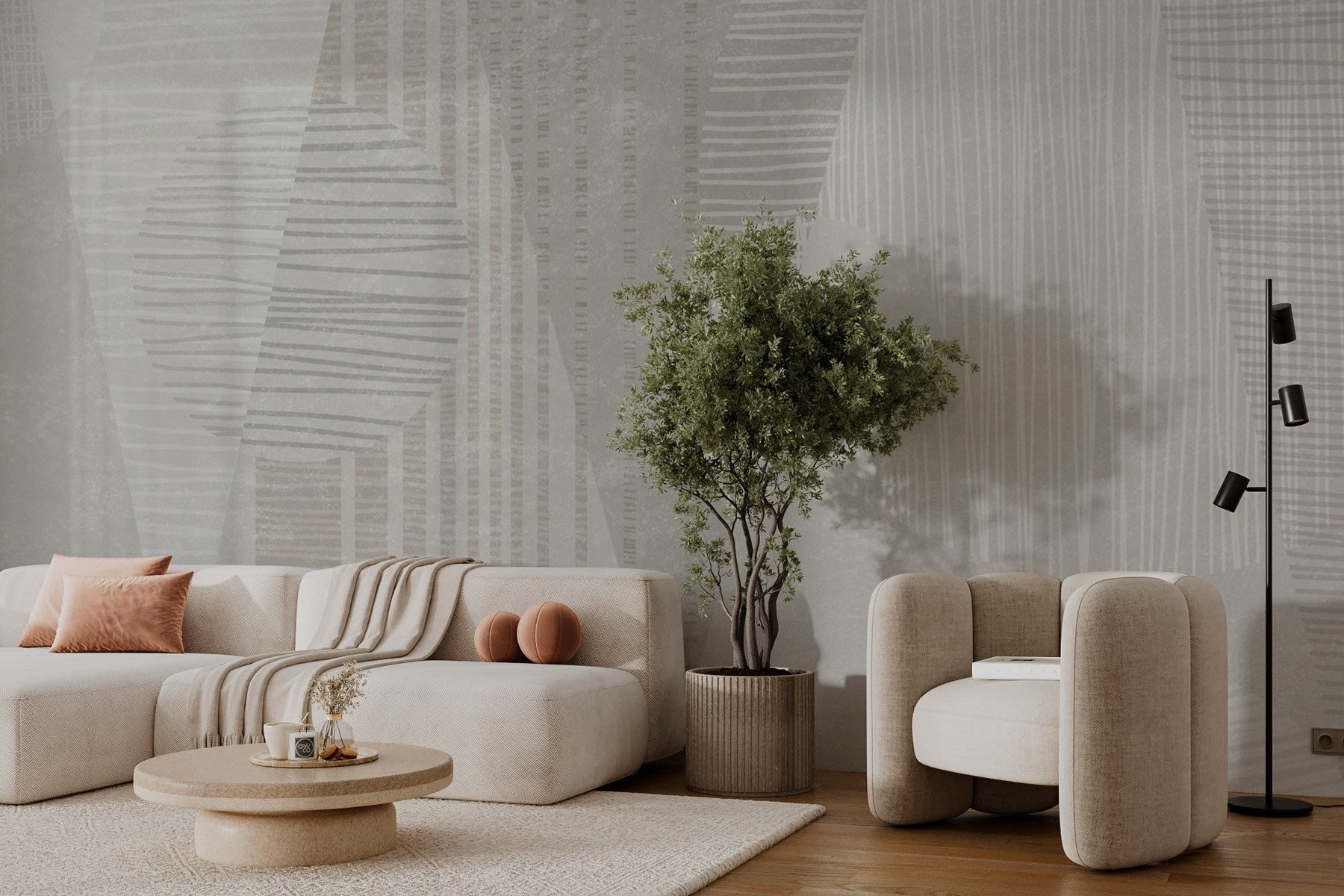 Transformeer elke ruimte met deze prachtige muurschildering met zachte, rustgevende kleuren en zachte patronen. Stel je voor dat je een kamer binnenstapt waar de muren comfort en stijl uitstralen. De speelse geometrische vormen vermengen zich moeiteloos en creëren een sfeer die modern is zonder te opzichtig te zijn. Perfect voor gezellige woonkamers of serene slaapkamers, het nodigt uit tot warmte en creativiteit. Stel je voor: loungen met een goed boek, je favoriete deken en deze muurschildering die de toon zet. Het is alsof je een kunstwerk hebt dat zowel fris als tijdloos aanvoelt – een echte conversatiestarter!