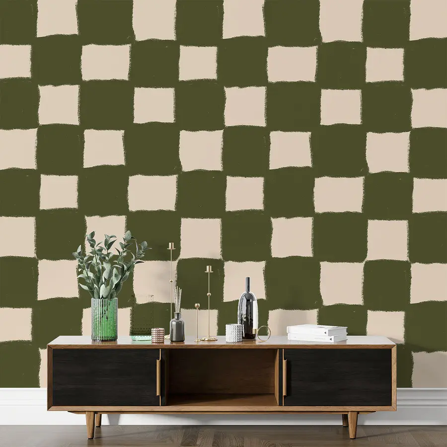 Transformeer je muren met een prachtige groen-wit geblokte muurschildering, perfect voor iedereen die op zoek is naar een frisse vibe. Dit patroon voegt een speels tintje toe aan elke kamer en nodigt je bijna uit om een theekransje te geven of gezellig een boek te lezen. Stel je voor dat je een ruimte binnenstapt die zowel uitnodigend als stijlvol aanvoelt, als een charmant café waar je nooit meer weg wilt. Het is rustgevend en toch levendig, met de juiste balans voor die chille dagen thuis of levendige bijeenkomsten met vrienden. Telkens als je er langs loopt, zul je glimlachen, een eenvoudig plezier in een wereld vol chaos. Geef je ruimte het karakter dat hij verdient!