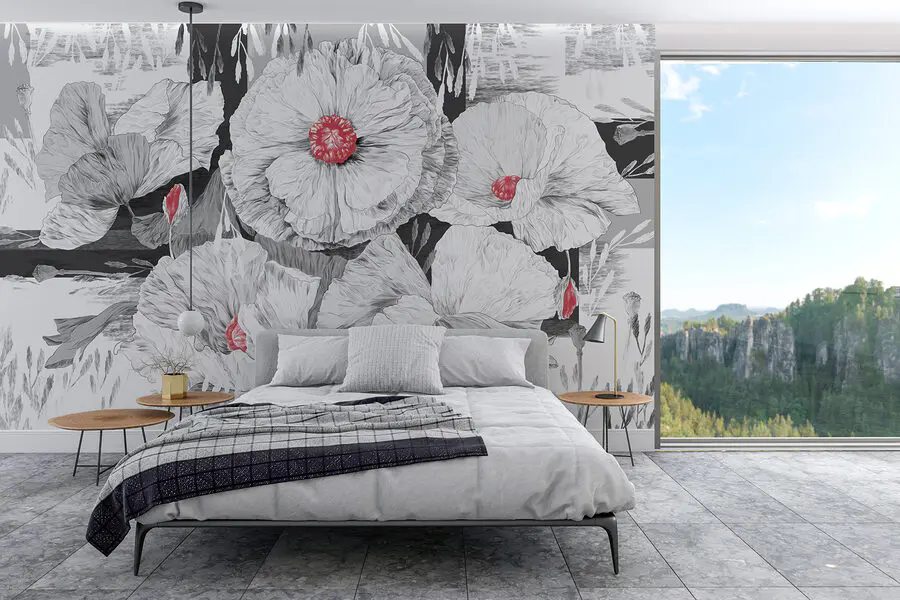 Transformeer je ruimte met deze opvallende muurschildering met een opvallende groep witte bloemen met een rood hart. Het is alsof je een tuin in huis haalt – zonder het gedoe van water geven of vervelende bijen! De frisse, monochrome tinten in combinatie met de levendige rode knallen creëren een prachtig centraal punt dat gasten zal doen opkijken. Stel je eens voor hoe het is om in een kamer te zitten die versierd is met deze schoonheid, thee te drinken en het gevoel te hebben dat je omarmd wordt door de natuur. Of het nu je woonkamer siert of een creatief hoekje, deze muurschildering voegt een vleugje eigenzinnigheid en charme toe, waardoor elke dag een beetje vrolijker aanvoelt. Perfect voor diegenen die houden van kunst die rustig maar krachtig spreekt.