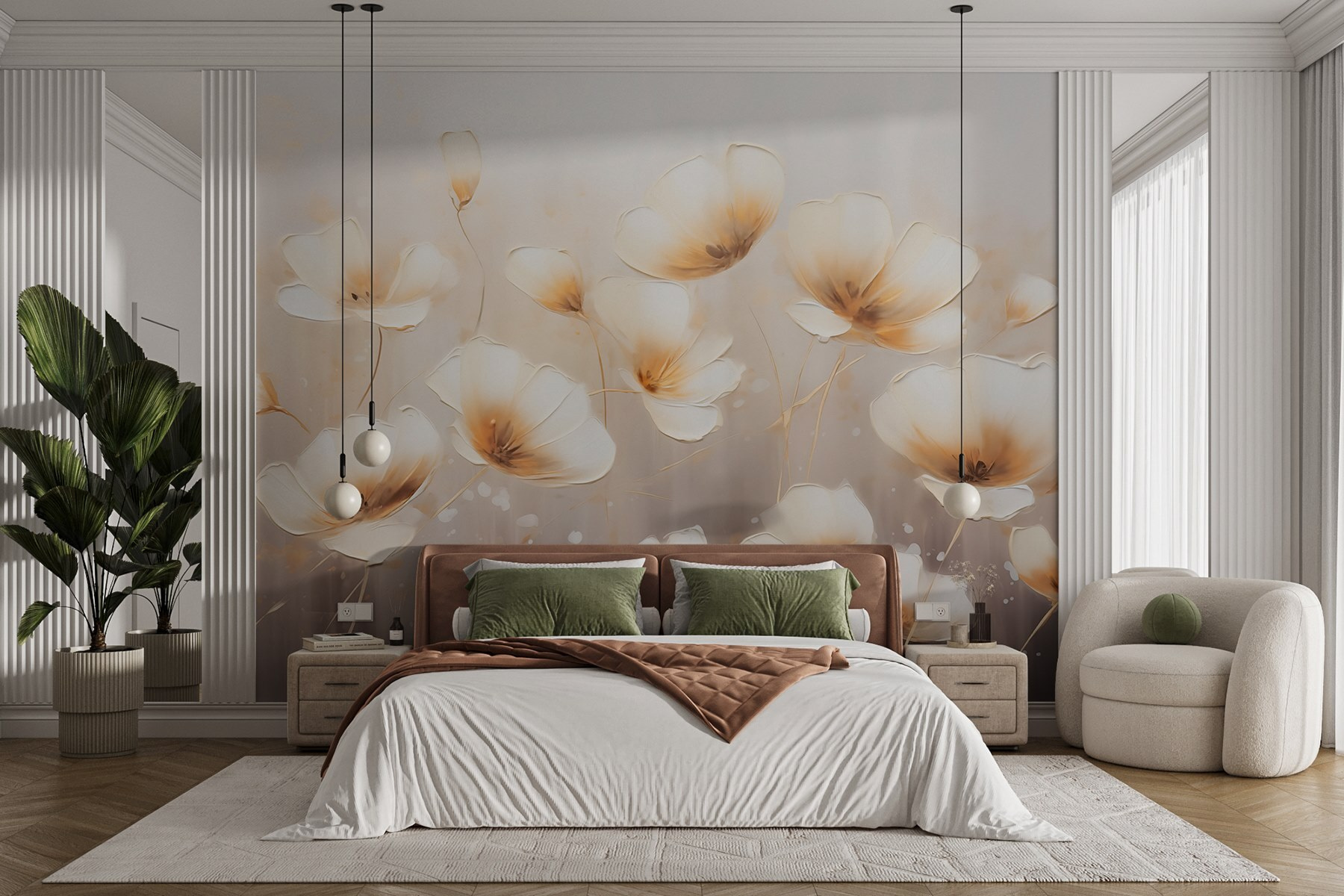 Imagine strolling into a room that feels like a gentle spring morning, thanks to this stunning wall mural. Named “Wall Murals Painting of Flowers on a White Background,” it captures delicate flowers dancing on a soft, inviting backdrop. It’s like bringing a garden indoors without the need for a watering can.