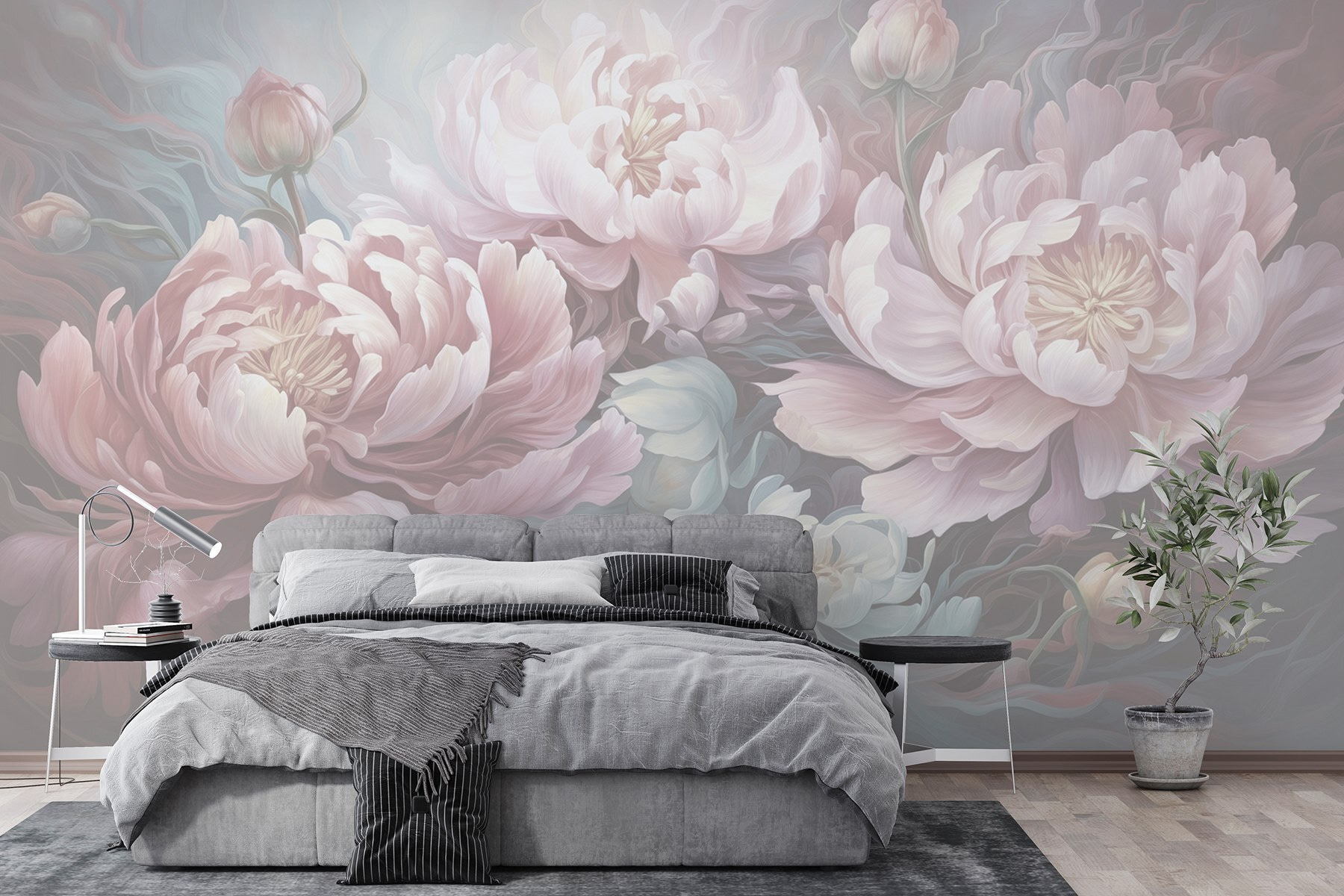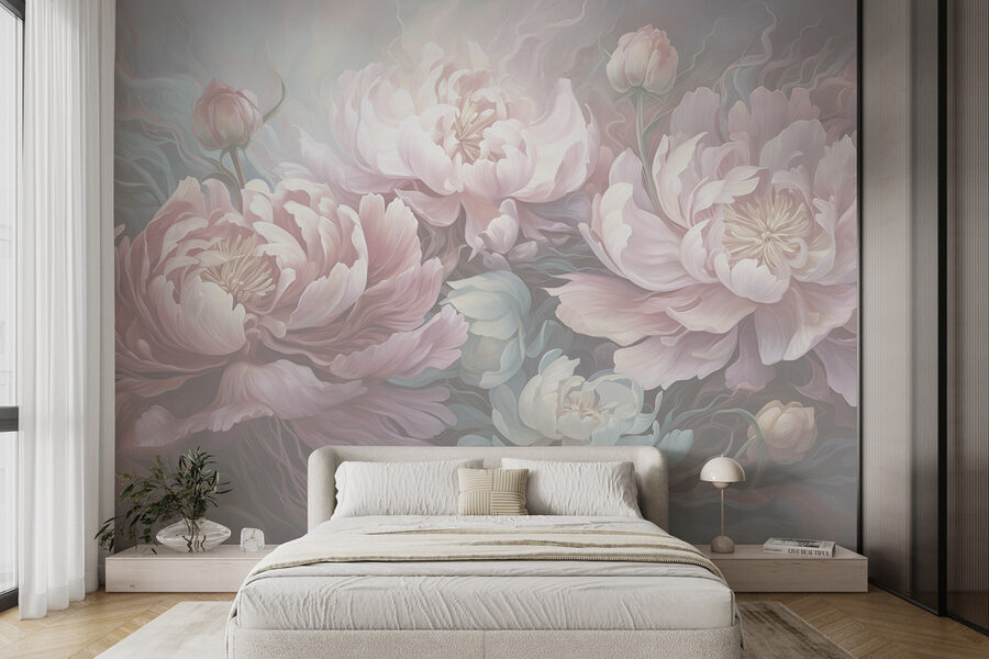 Tover elke ruimte om in een tuin vol eigenzinnigheid met deze prachtige muurschildering met bloeiende bloemen tegen een zachtgrijze achtergrond. Stel je voor dat je een serene oase in je woonkamer binnenstapt! De zachte rondingen en tere bloemblaadjes roepen een gevoel van vrede op en fluisteren elke dag van het jaar verhalen van de lente. Deze muurschildering is niet alleen mooi, maar voegt karakter en warmte toe, waardoor gasten het gevoel hebben dat ze zijn uitgenodigd in een gezellig bloemenwonderland. Perfect voor die dagen waarop een beetje kleurentherapie net is wat de ziel nodig heeft – wie houdt er niet van bloemen, toch? Ze fleuren de kamer en de stemming op en veranderen gewone momenten in iets betoverends.