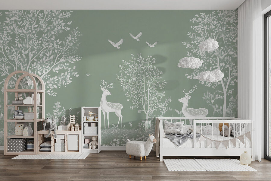 Tover je ruimte om in een rustige bosrijke omgeving met deze betoverende muurschildering met sierlijke herten en grillige vogels. Stel je voor dat je in een sereen veld stapt waar de natuur danst in zachte tinten en zachte lijnen. Dit ontwerp versiert niet alleen een muur, het brengt een stukje van het buitenleven naar binnen, perfect voor huizen die een beetje leven in hun stijl willen blazen. Stel je ontspannen middagen voor met een gezellig boek in de hand, of vrienden die samenkomen met een achtergrond die een gesprek op gang brengt. Het is alsof je een stukje magie van de natuur in huis hebt – wie wil dat nou niet? Omarm de rust en laat deze muurschildering je meenemen naar waar de wilde dingen zijn.