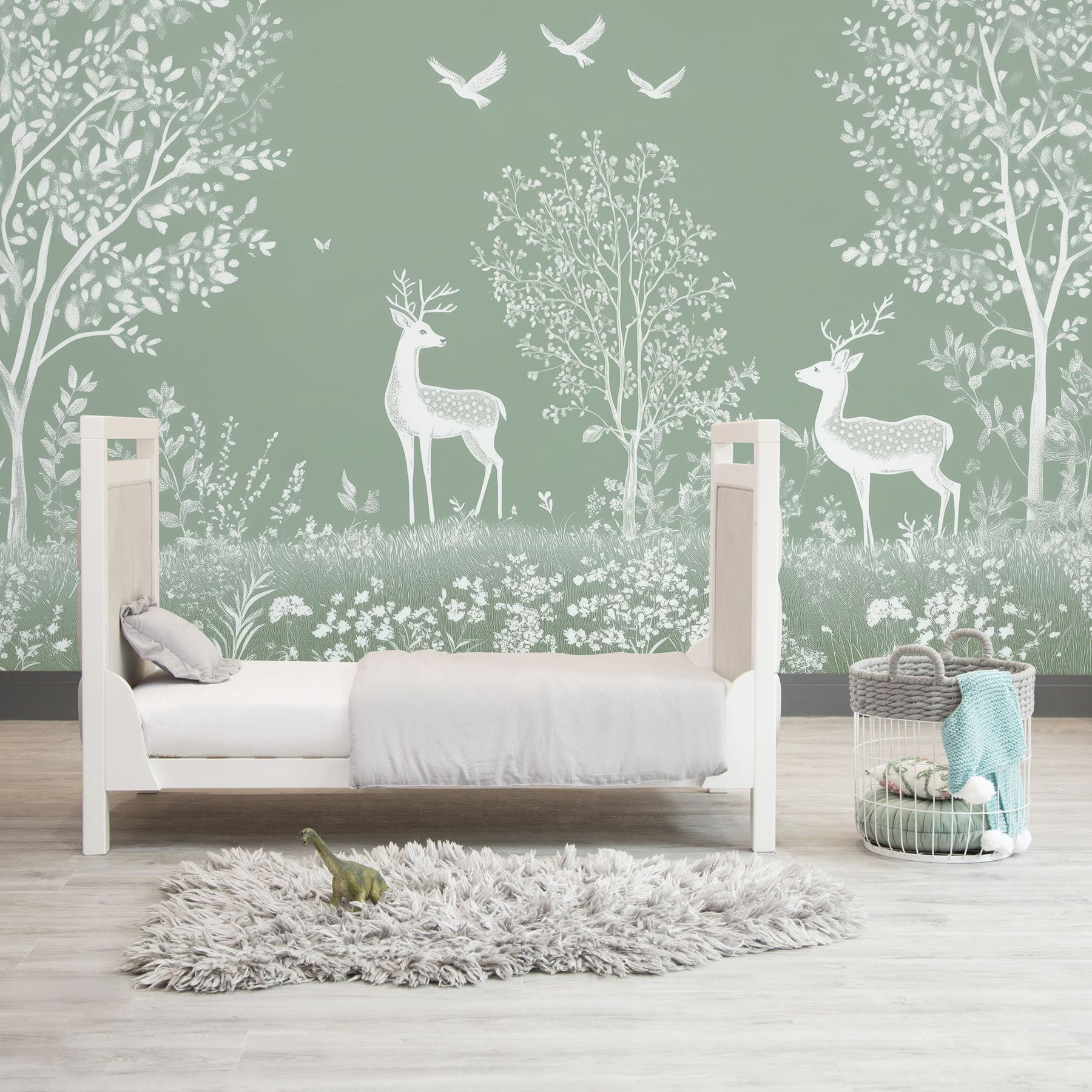 Tover je ruimte om in een rustige bosrijke omgeving met deze betoverende muurschildering met sierlijke herten en grillige vogels. Stel je voor dat je in een sereen veld stapt waar de natuur danst in zachte tinten en zachte lijnen. Dit ontwerp versiert niet alleen een muur, het brengt een stukje van het buitenleven naar binnen, perfect voor huizen die een beetje leven in hun stijl willen blazen. Stel je ontspannen middagen voor met een gezellig boek in de hand, of vrienden die samenkomen met een achtergrond die een gesprek op gang brengt. Het is alsof je een stukje magie van de natuur in huis hebt – wie wil dat nou niet? Omarm de rust en laat deze muurschildering je meenemen naar waar de wilde dingen zijn.