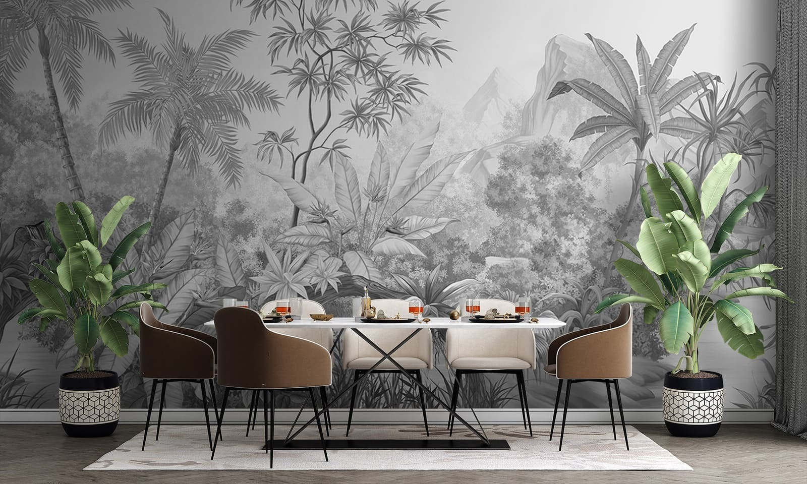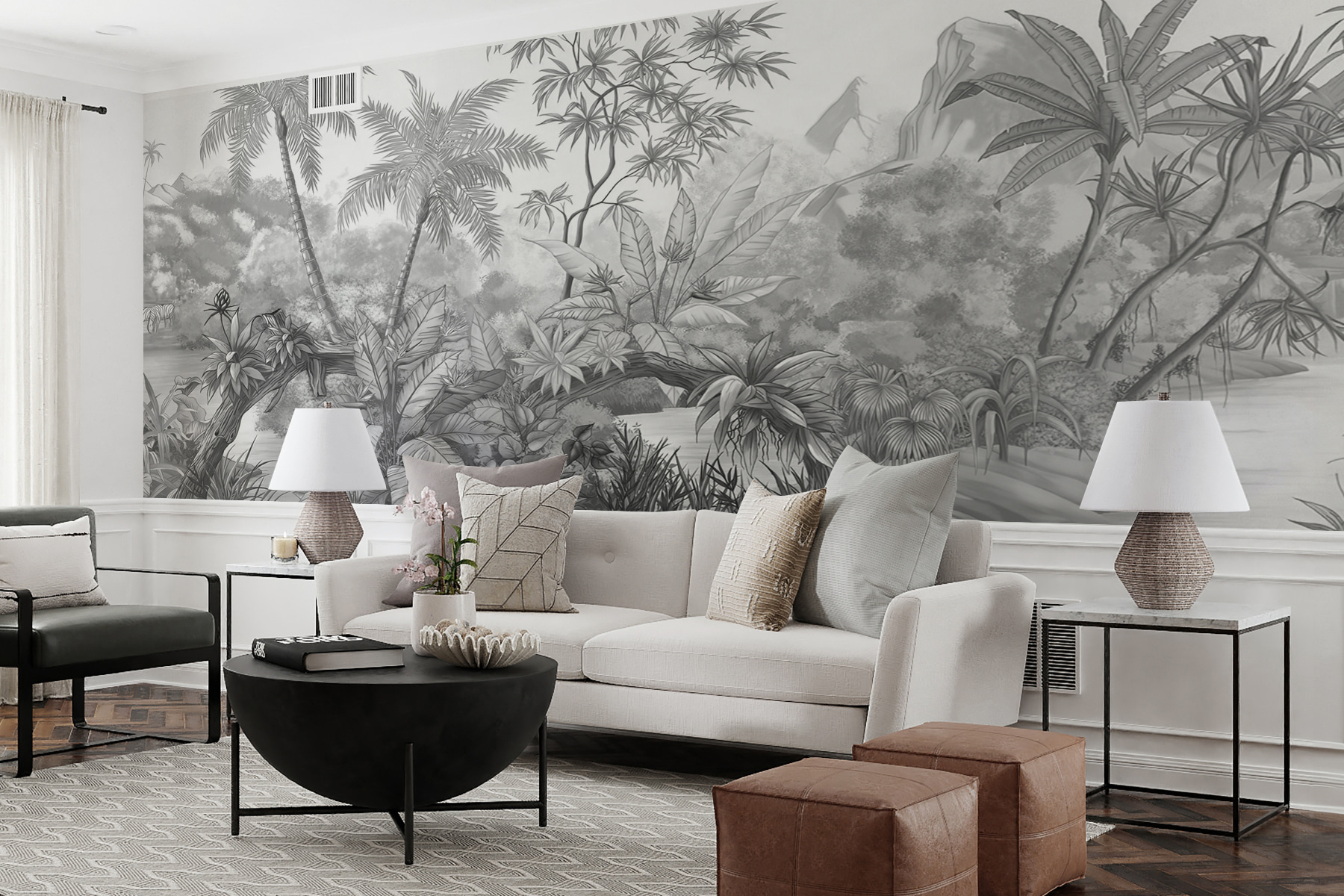 Stap in je eigen persoonlijke jungleavontuur met deze “Drawing of a Zebra” muurschildering. Het is alsof je een geheime deur opent naar een sereen tropisch paradijs, gewoon in je eigen woonruimte. Stel je voor dat je, elke keer als je opkijkt, kijkt naar speelse zebra’s bij het water en weelderig, gedetailleerd gebladerte dat bijna tropische geheimen fluistert. Het is zwart-wit elegantie met een vleugje wilde charme.