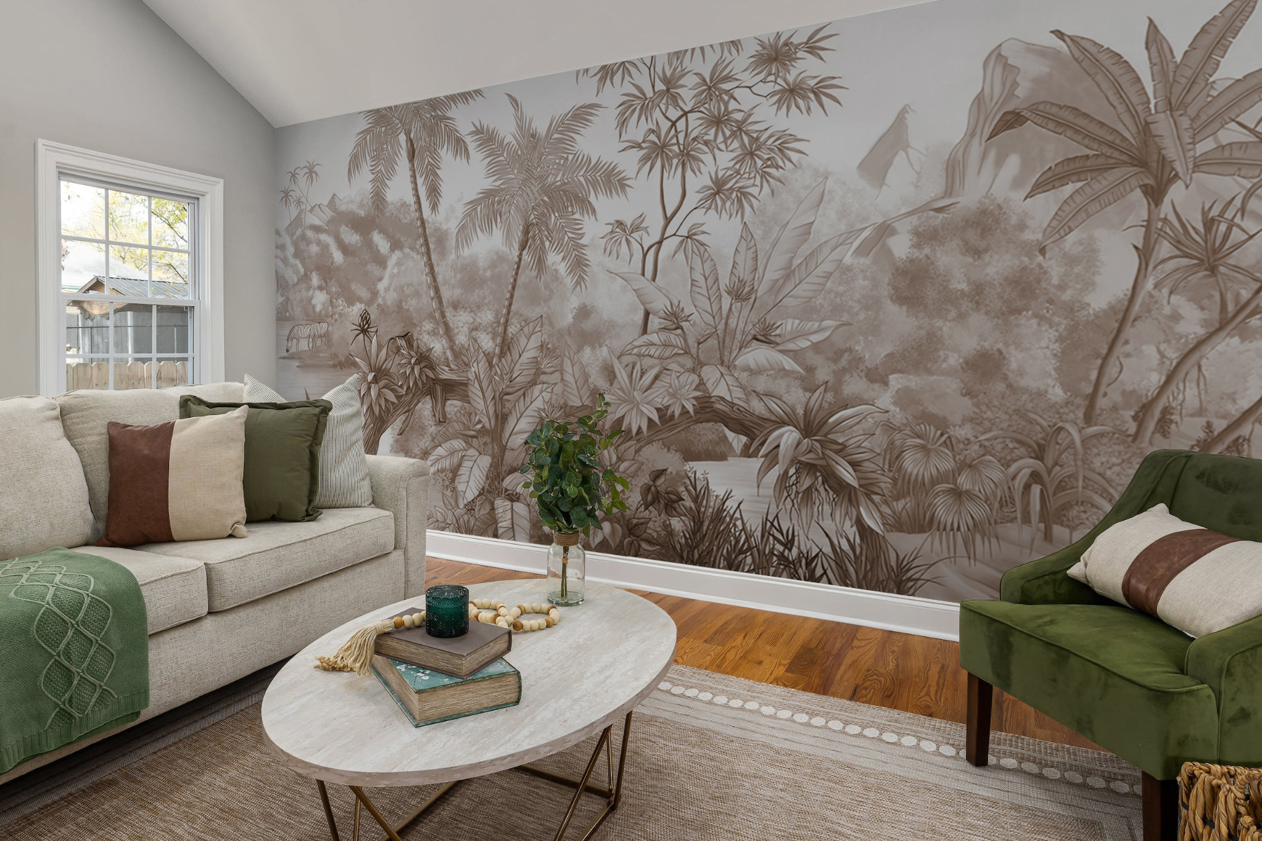 Tover je muren om tot een oase in de jungle met deze prachtige muurschildering, “Drawing of a Zebra”. Stel je voor dat je je kamer binnenstapt en het gevoel hebt dat je op een exotisch avontuur bent, met weelderige palmbomen en levendige natuurscènes om je heen. Het is alsof je een mini-safari in huis hebt! De ingewikkelde details en het serene kleurenpalet van deze muurschildering creëren een rustgevende maar avontuurlijke sfeer – perfect om bij weg te dromen of tot rust te komen na een lange dag. Of je nu een natuurliefhebber bent of gewoon wat eigenzinnigheid aan je ruimte wilt toevoegen, deze muurschildering zal van je muren een conversatiestarter maken. Stel je voor dat je koffie drinkt terwijl zebra’s en tropisch gebladerte je meevoeren naar een rustige wereld. Het is meer dan een decor – het is een ervaring!
