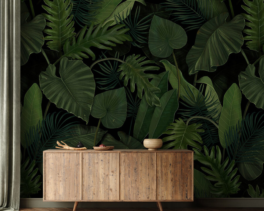 Zeg maar dag tegen saaie muren en hallo tegen je eigen weelderige jungle! Deze muurschildering met zijn groene, tropische bladmotief verandert elke kamer in een levendige, rustgevende oase. Kun je je voorstellen dat je na een lange dag in je woonkamer zit, omringd door deze prachtige bladeren? Het is net een mini-uitstapje naar het regenwoud zonder je huis te verlaten. Het gedetailleerde gebladerte vangt de essentie van de natuur, waardoor deze muurschildering perfect is voor iedereen die een beetje van buiten naar binnen wil halen.