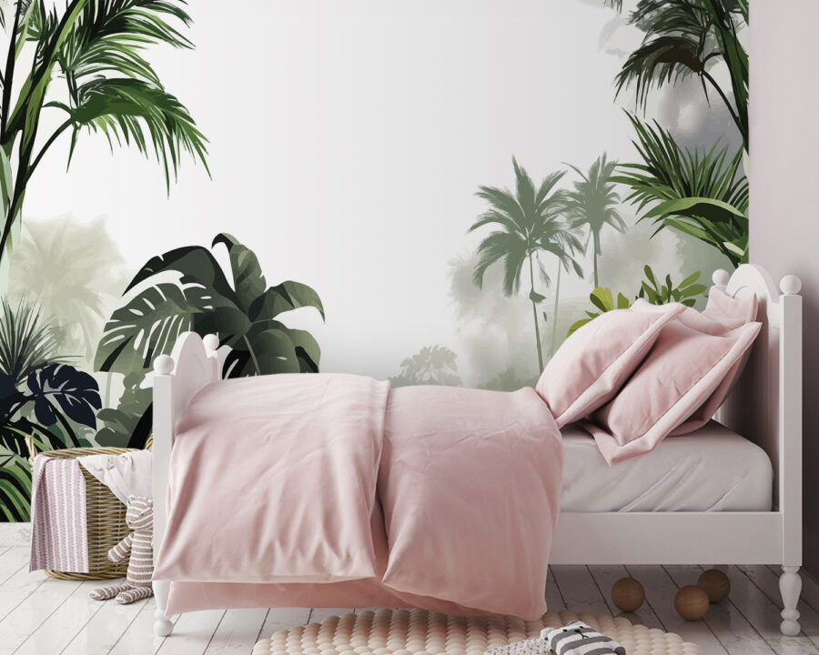 Verander elke kamer in een weelderige ontsnapping met deze fascinerende muurschildering van palmbomen in een dromerig mistig bos. Stel je voor dat je wakker wordt door de zachte omhelzing van groen, alsof je in een rustige oase uit je dromen bent gestapt. Deze muurschildering is perfect voor kinderkamers of iedereen die hunkert naar een stukje natuur en voelt aan als een zachte uitnodiging om op ontdekkingstocht te gaan. Het is niet alleen decoratie; het prikkelt de verbeelding en maakt zelfs de grijsste dag een beetje vrolijker. Voeg een vleugje avontuur toe aan de muren en zie hoe de magie zich ontvouwt. Wie wil er nu niet een beetje junglewonder in huis?