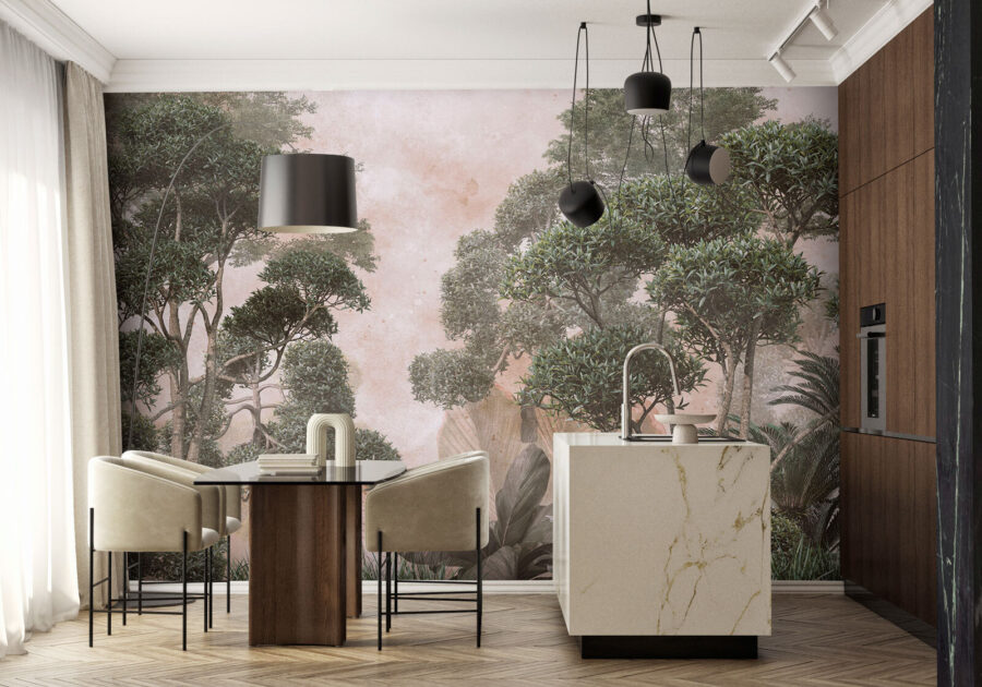 Verander je ruimte in een serene oase met deze prachtige muurschildering van weelderige bomen en rustgevende landschappen. Stel je voor dat je ‘s ochtends aan je koffie nipt terwijl je naar deze vredige achtergrond staart. Het is alsof je een stukje natuur in huis haalt zonder modderige schoenen. Het levendige groen brengt leven in elke kamer, waardoor die fris en uitnodigend aanvoelt. Deze muurschildering is perfect voor het creëren van een gezellig leeshoekje of een zen werkplek. Bovendien is het een geweldige gespreksstarter. Vrienden zullen graag vragen waar ze er een kunnen krijgen, terwijl jij alleen maar zult glimlachen, omdat je weet dat het jouw geheimpje van sereniteit is!