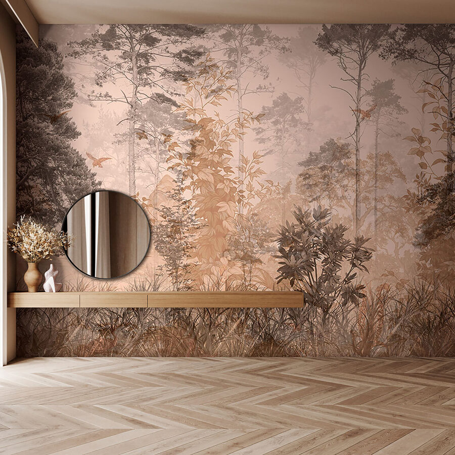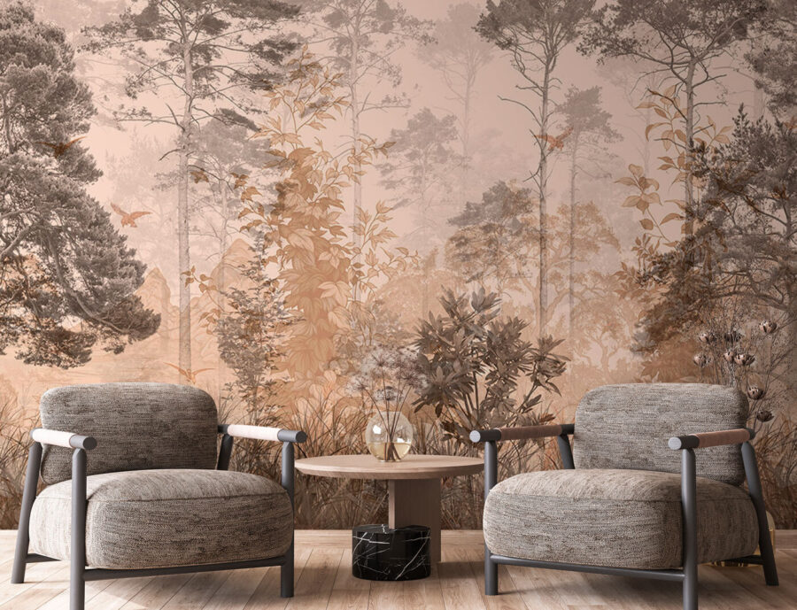 De gedempte tinten zorgen voor een rustgevende sfeer, perfect om tot rust te komen na een lange dag. Stel je voor dat je thee drinkt en jezelf verliest in de ingewikkelde details van de bomen en bladeren. Het is alsof het bos tot leven is gekomen op je muur – zonder de insecten natuurlijk! Ideaal voor iedereen die er even tussenuit wil, zonder ooit het huis uit te hoeven. Deze muurschildering decoreert niet alleen, maar transformeert en creëert een knusse haven die precies goed voelt.