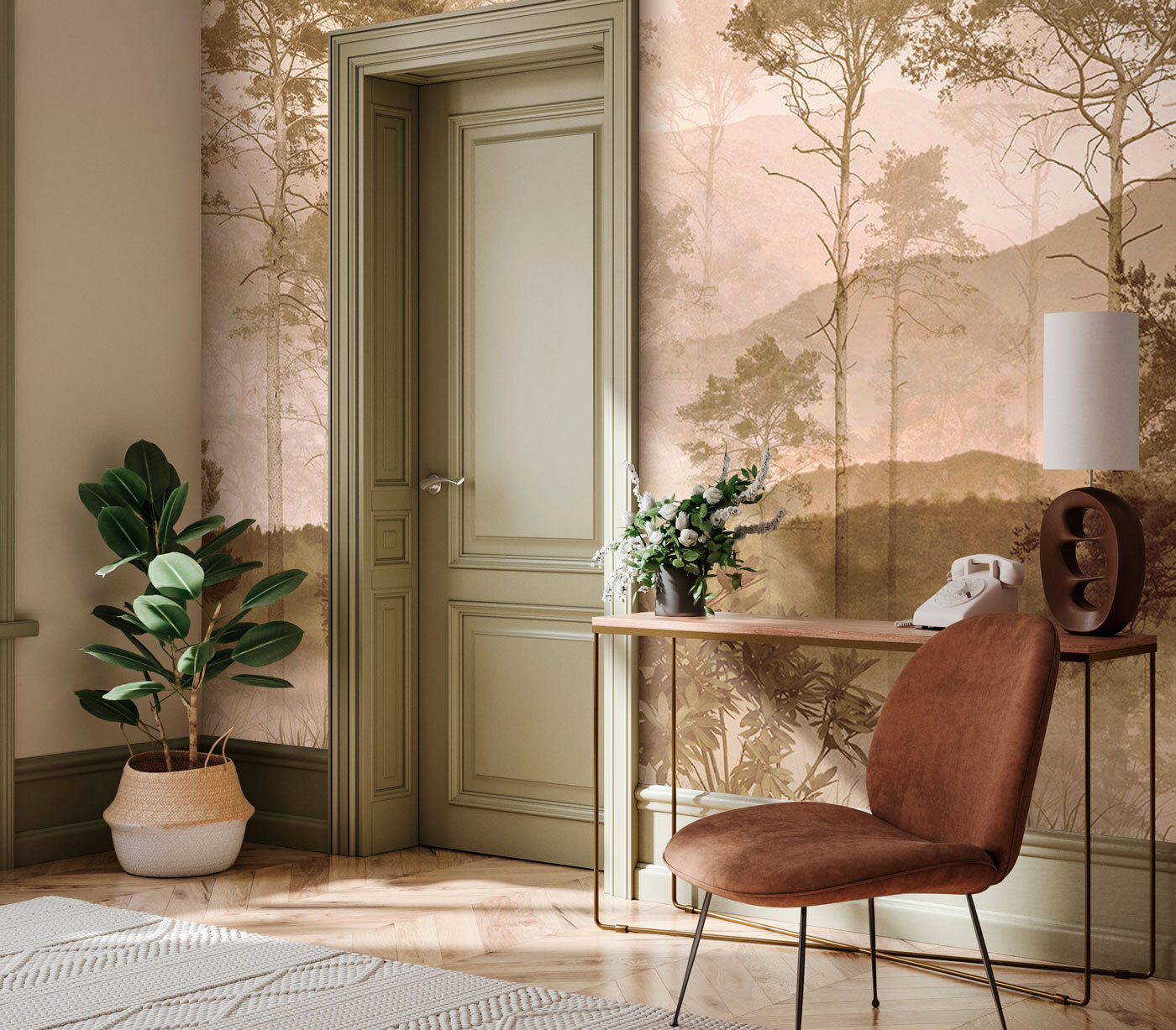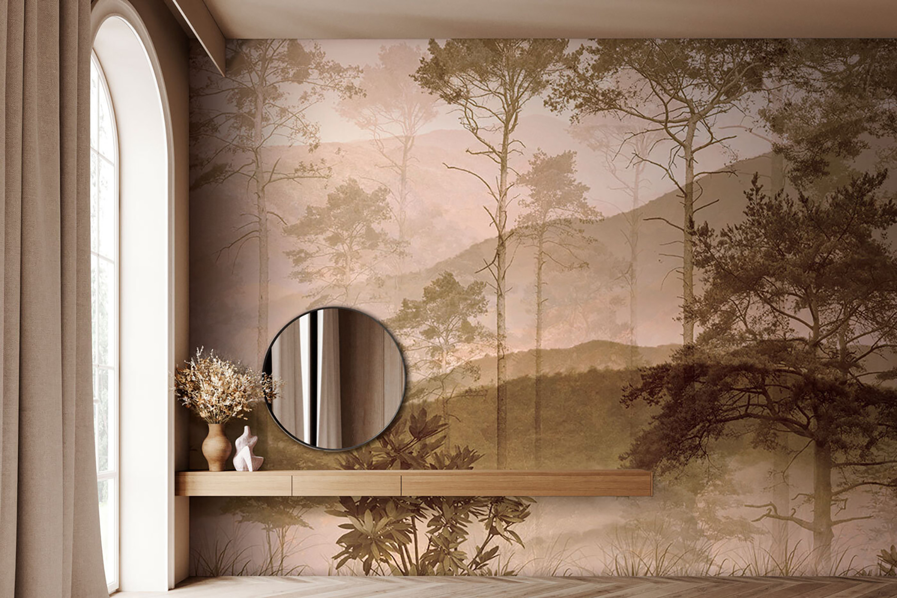 Bovendien maken de subtiele tinten en het zachte neveleffect hem veelzijdig in elke interieurstijl. Het is dus niet zomaar een muurschildering; het is een rustig toevluchtsoord dat een beetje natuurmagie in je huis brengt. 🌲🗻