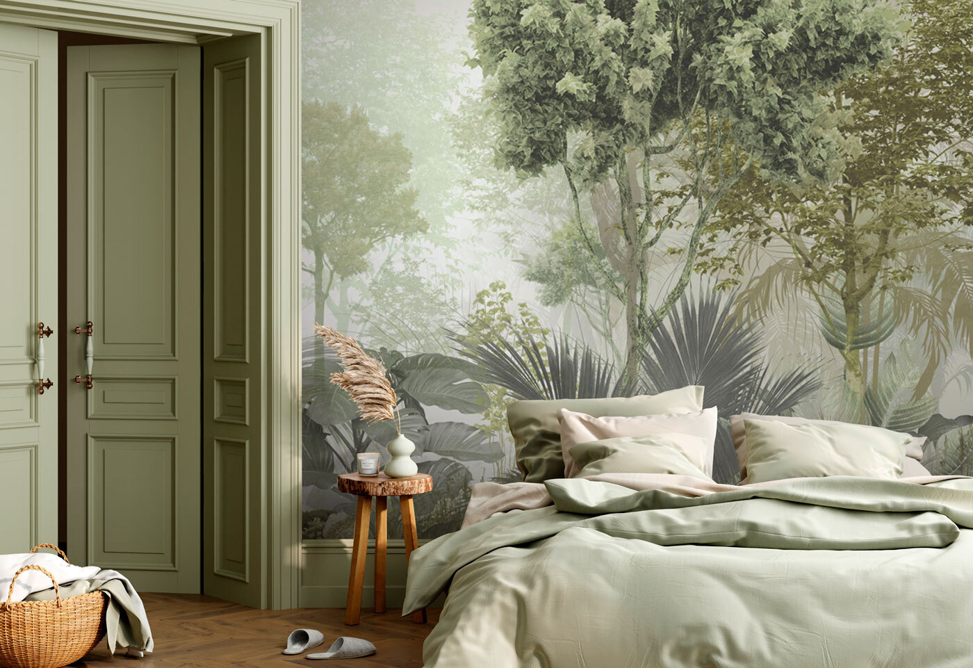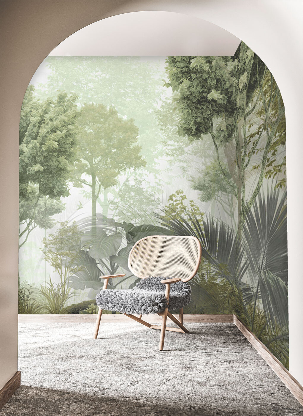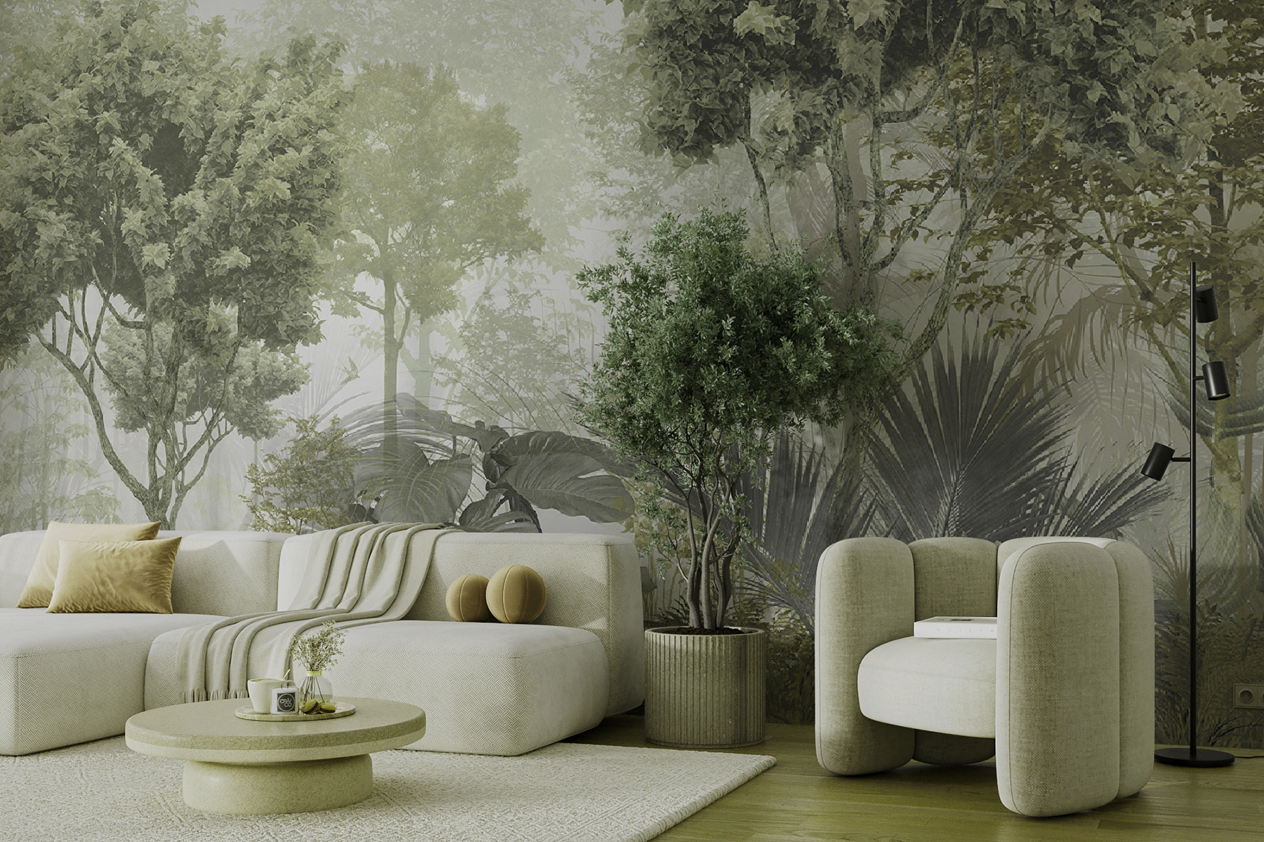Ooit het gevoel willen hebben dat je vanuit je woonkamer door een mistig bos wandelt? Deze muurschildering “Groep bomen in een mistig bos” is als een dromerige ontsnapping naar een serene jungle. Serieus, het is alsof je in een tropisch uitje stapt zonder de vliegreis. Het weelderige bladgroen en de zachte mist geven een rustgevende, bijna magische sfeer. Stel je voor dat je je favoriete boek leest met deze vredige scène als achtergrond – helemaal zen. En stel je de complimenten voor die je krijgt als vrienden binnenkomen en het gevoel krijgen dat ze op avontuur zijn!